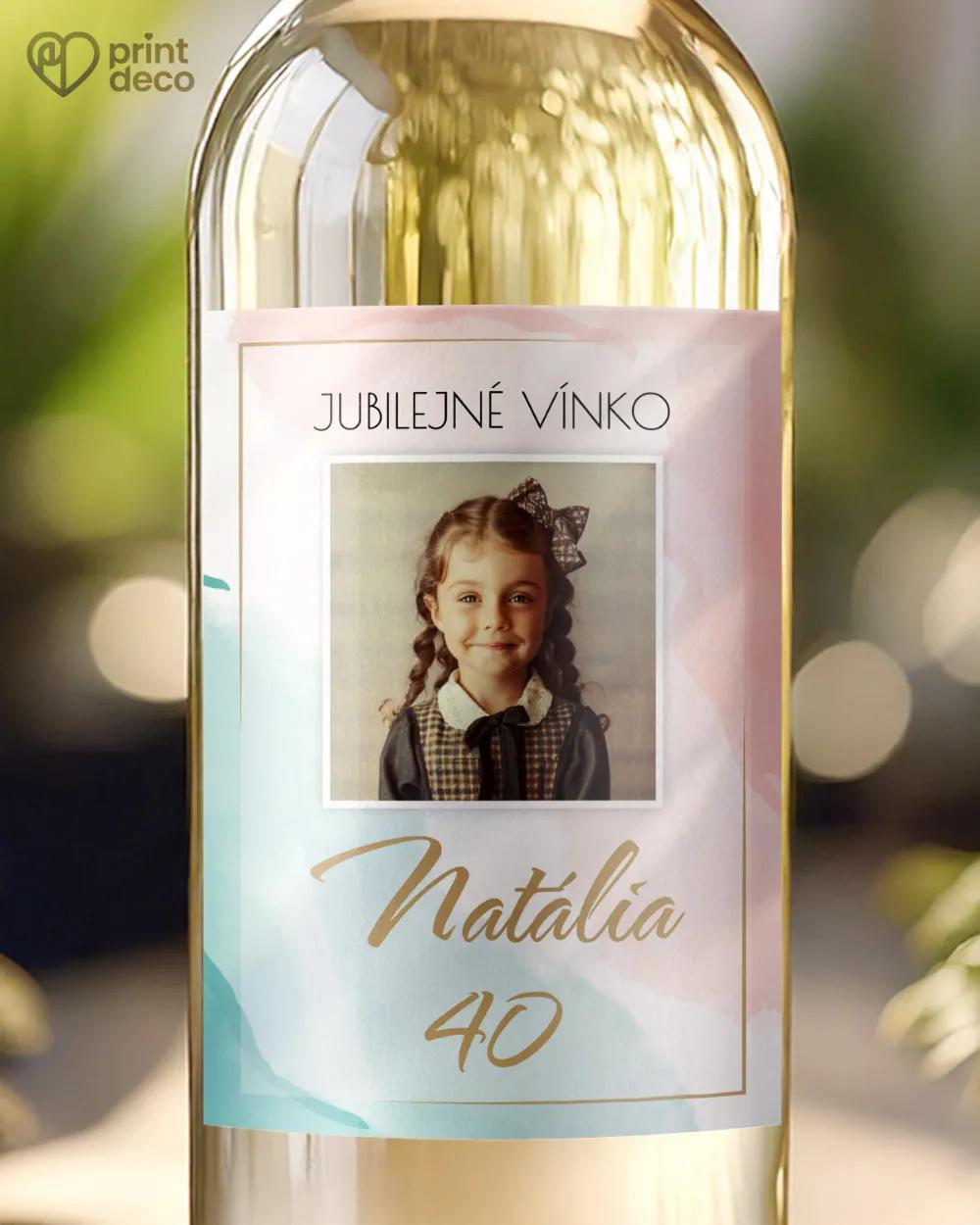 Štýlové etikety na víno s menom a vekom – jemný akvarelový dizajn, možnosť úprav online, expresná výroba, ideálne na jubileum.