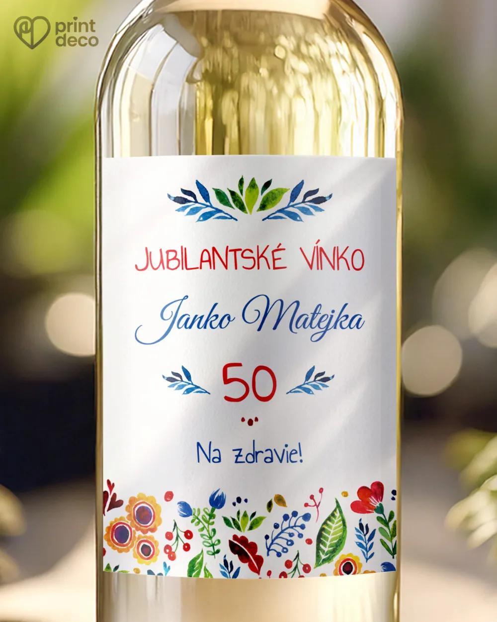 Modrá etiketa na víno s elegantnými zlatými detailmi. Vhodná na jubileum, oslavu aj výslužky. Expresná tlač, online úprava zdarma.