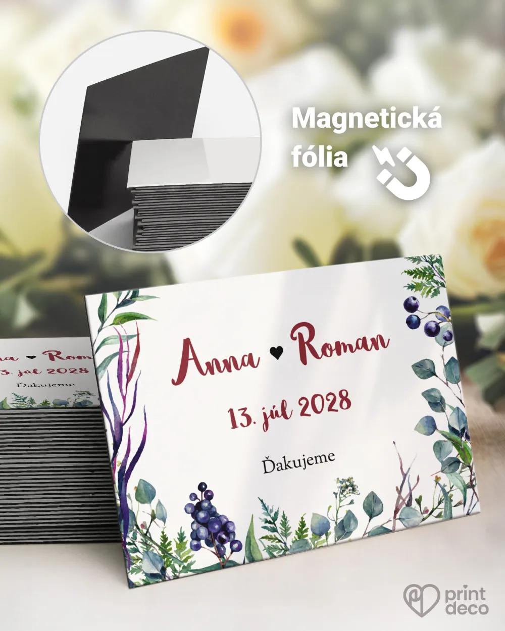 Originálne etikety na víno alebo pálenku s jemným botanickým motívom eukalyptu a lúčnych byliniek. Ideálne ako dekorácia na stôl aj výslužkový darček pre hostí pri oslave jubilea. Etiketu si môžete ľahko upraviť online zdarma. V ponuke nájdete aj ďalšie tlačoviny v rovnakom štýle – napríklad pozvánky, menovky či magnetky. Výroba je rýchla, kvalita tlače vysoká a výsledok zaručene zaujme.