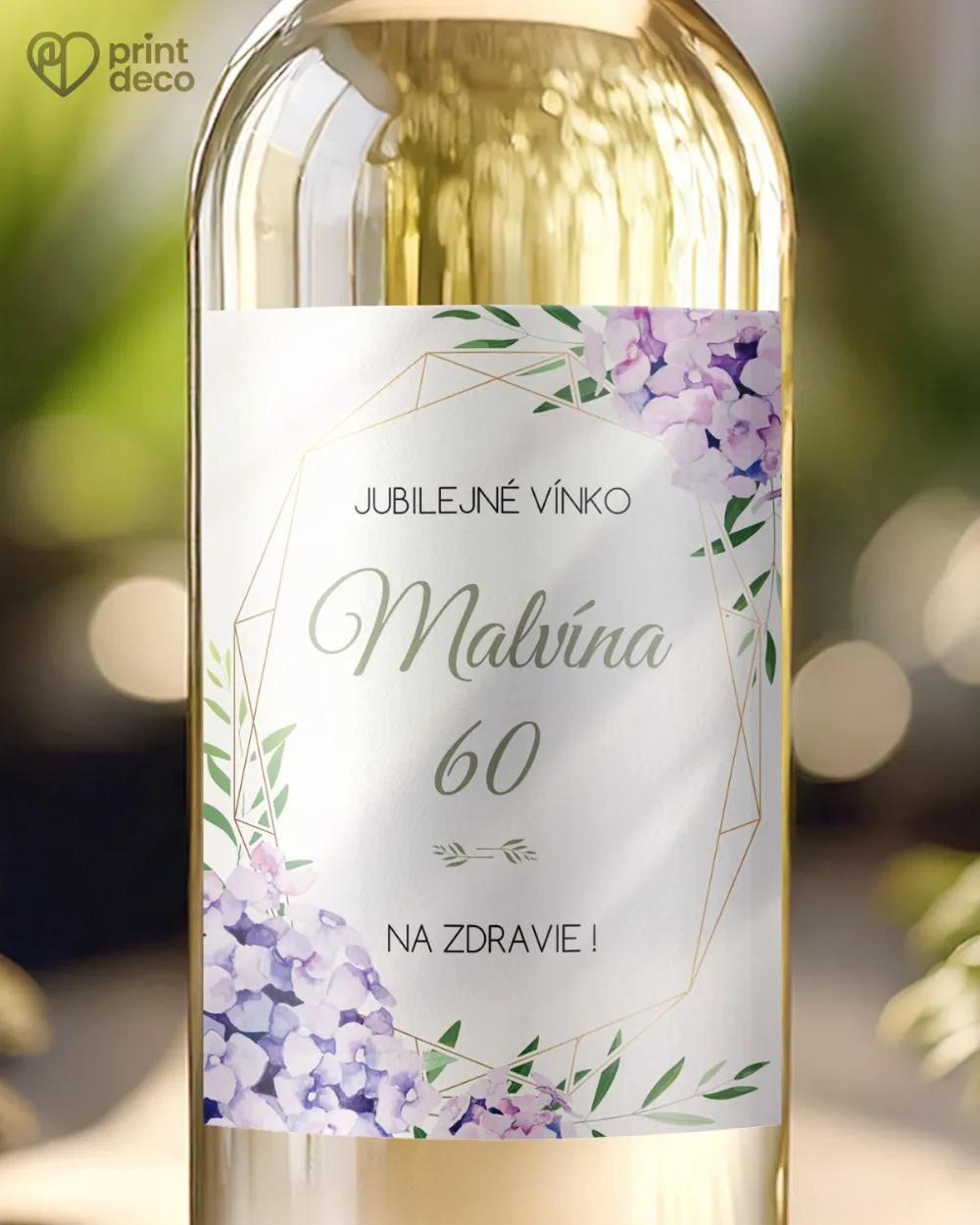 Personalizovaná etiketa s hortenziami a fotkou – ideálna na víno k oslave alebo ako darčeková výslužka pre hostí.
