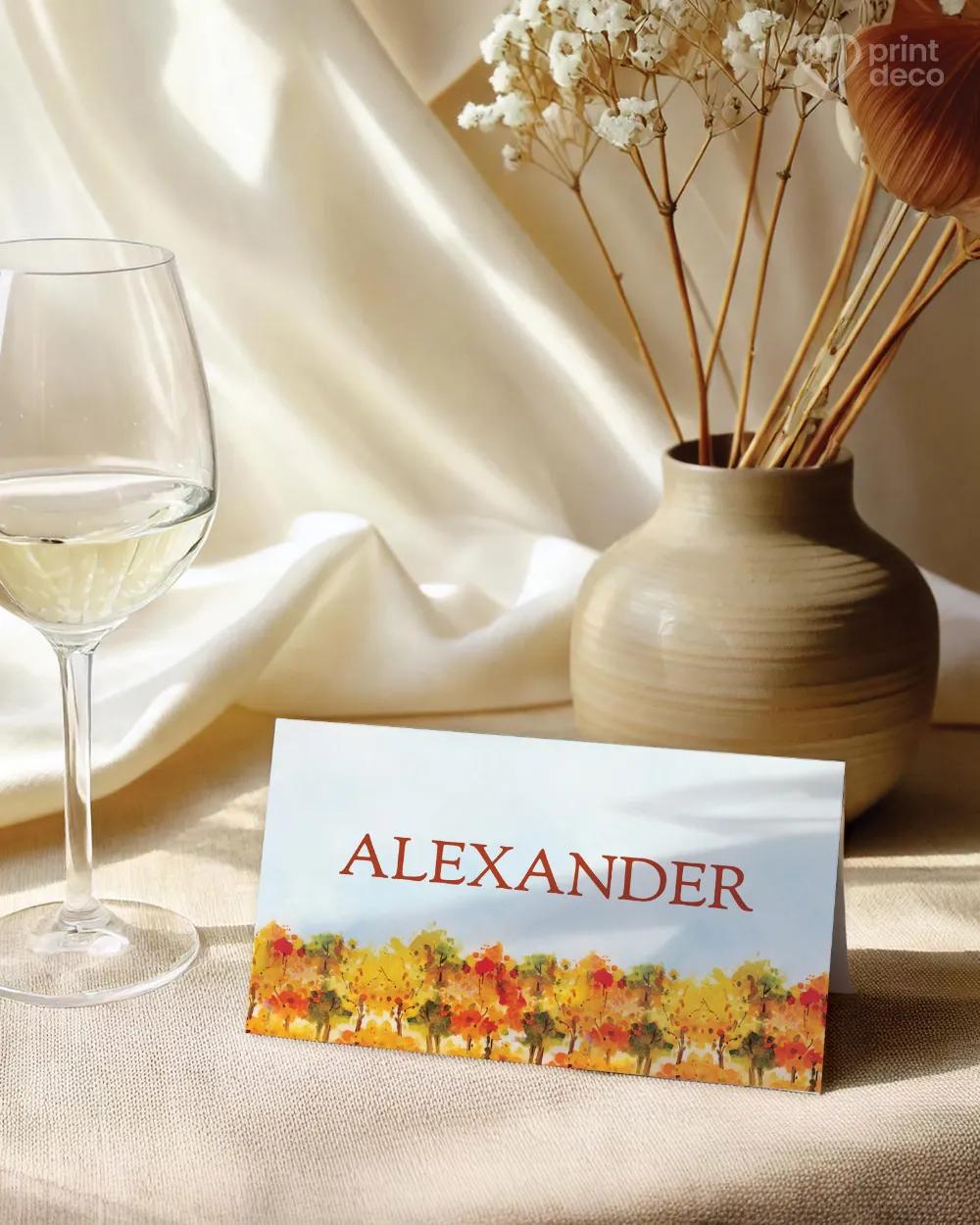 Táto originálna etiketa na fľašu s jemne akvarelovým jesenným motívom je ako stvorená na narodeninovú oslavu s atmosférou dozrievajúceho vína a zrelosti. Vhodná ako ozdoba priamo na slávnostné stoly alebo na výslužkové fľaše s vínom či domácou pálenkou. Etiketu si jednoducho upravíte online zdarma, ponúkame aj expresnú výrobu. Možnosť zladiť s ďalšími tlačovinami v rovnakom štýle.