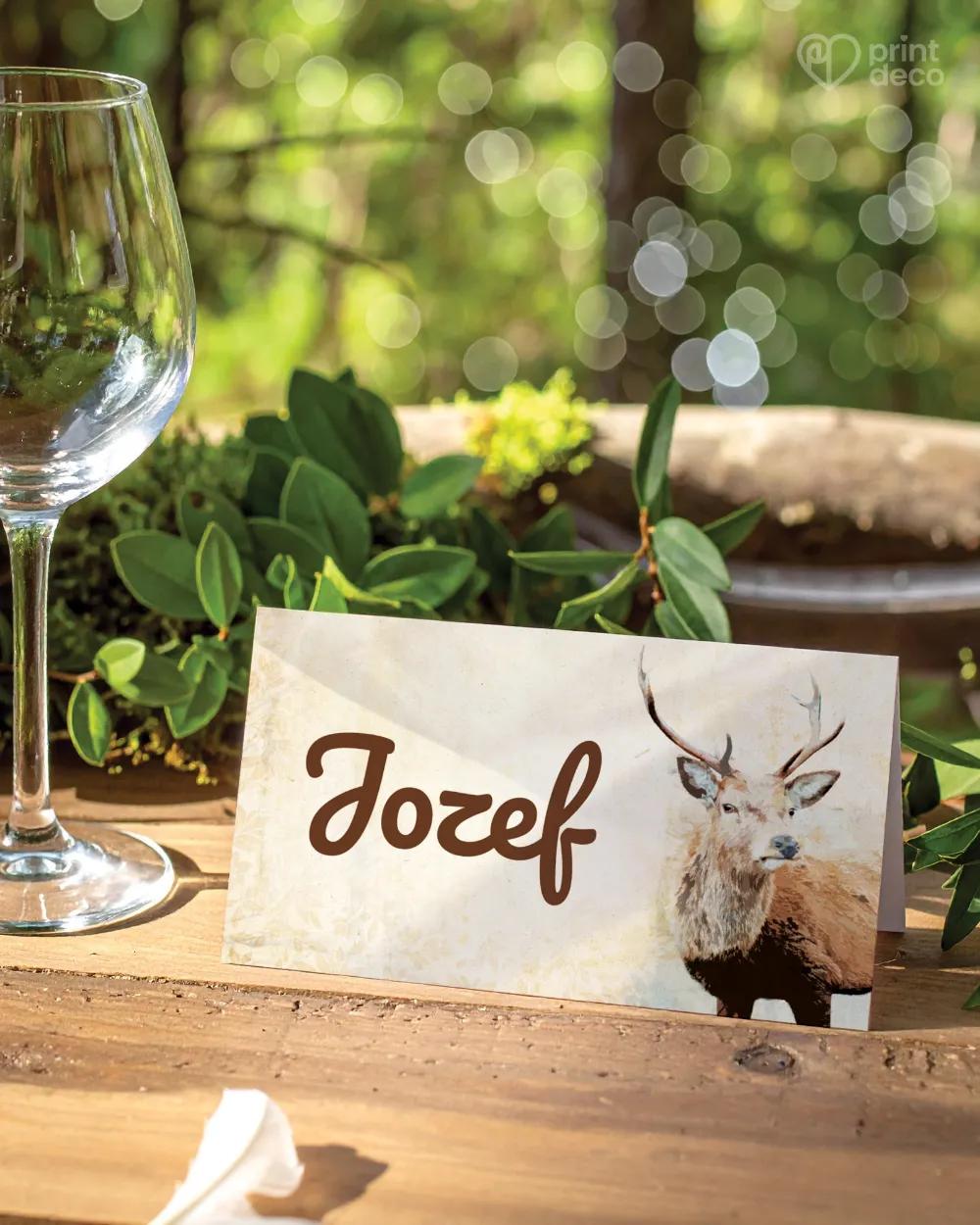 Poľovnícka etiketa na víno s motívom jeleňa. Skvelá na výročnú oslavu – ako výzdoba na stoly aj ako štýlový doplnok fľaše pre hostí.