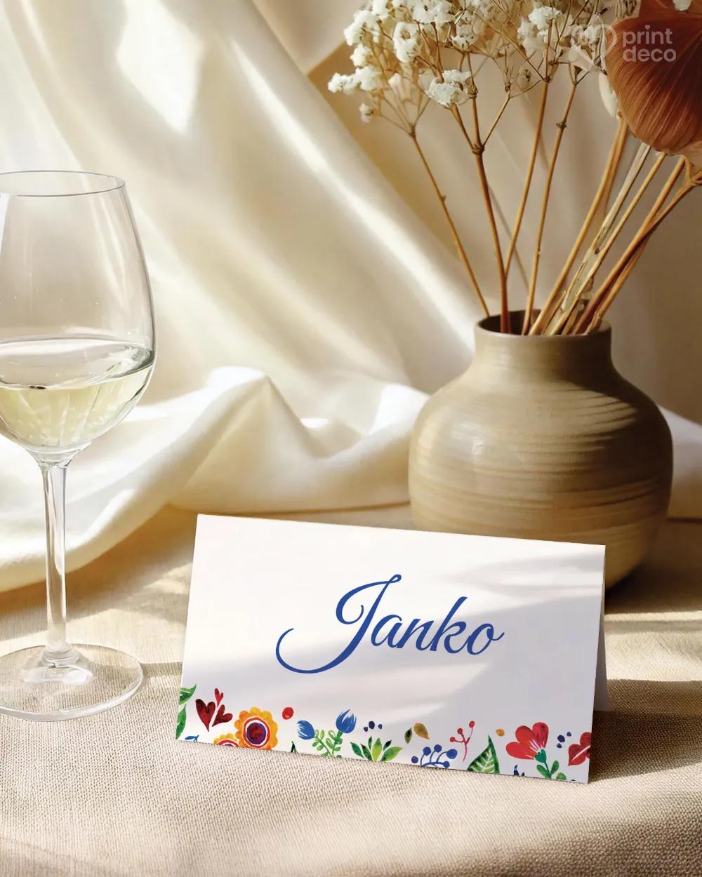 Žiarivé folklórne etikety na fľaše vína alebo alkoholu rozžiaria každú oslavu. Vhodné sú ako výslužka pre hostí aj ako súčasť výzdoby na stole. Všetky texty – meno, vek, dátum či vinš – si viete jednoducho upraviť online. Motív je ako stvorený pre ľudovo ladenú oslavu. V ponuke nájdete aj ďalšie tlačoviny v rovnakom dizajne. Expresná výroba, úprava zdarma.