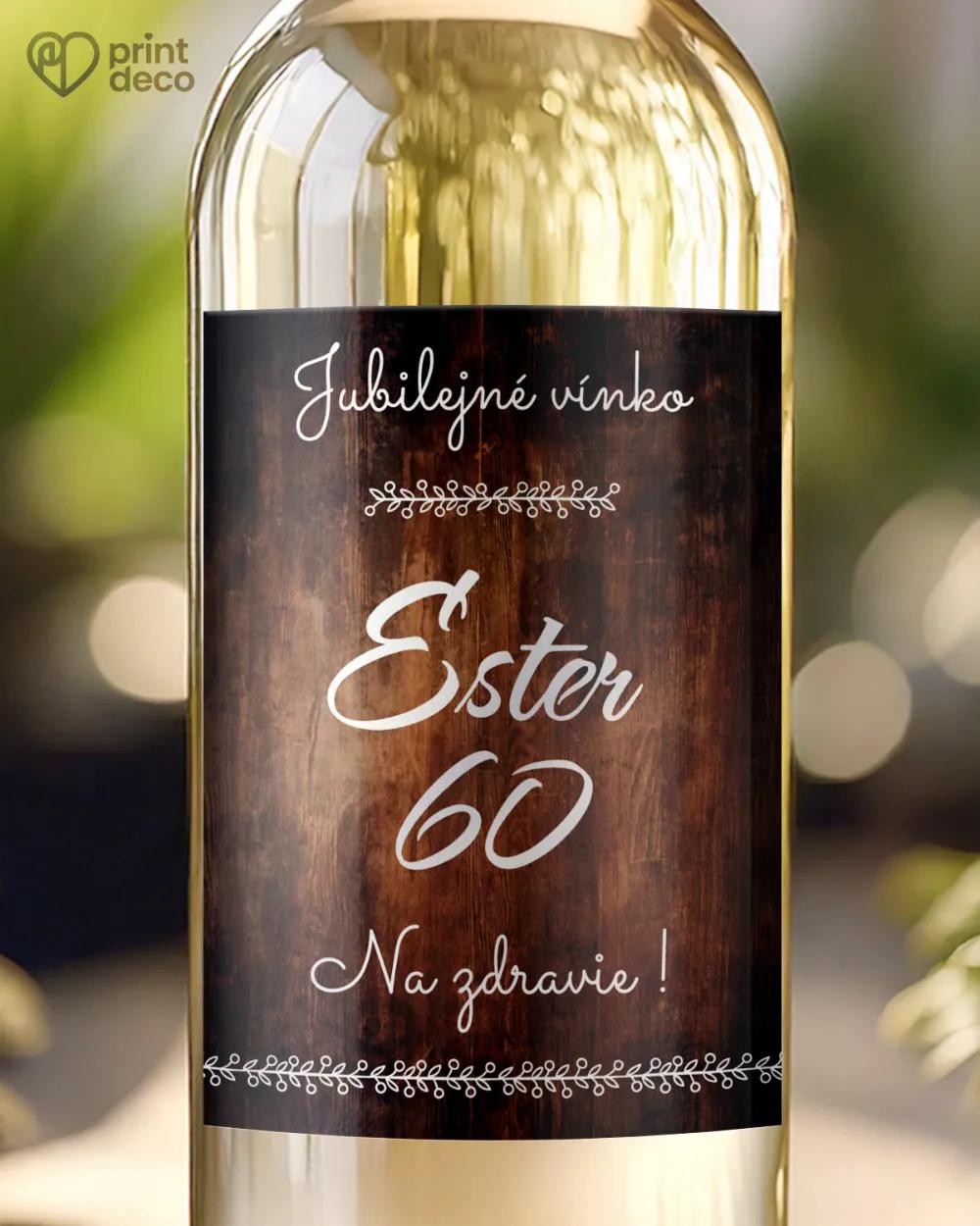 Etiketa na víno s dreveným pozadím a vlastnou fotkou – na výslužkové fľaše aj ako súčasť výzdoby oslavy.