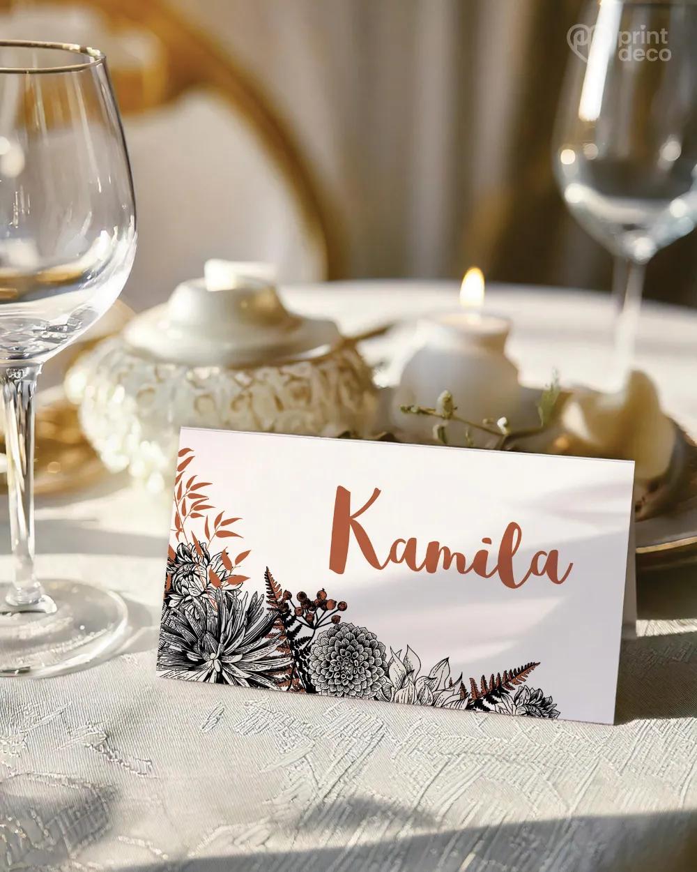 Kvetinová pozvánka v hnedo-bielo-čiernych farbách je ideálna pre oslavu bez krikľavých tónov, v tlmenom a štýlovom duchu.