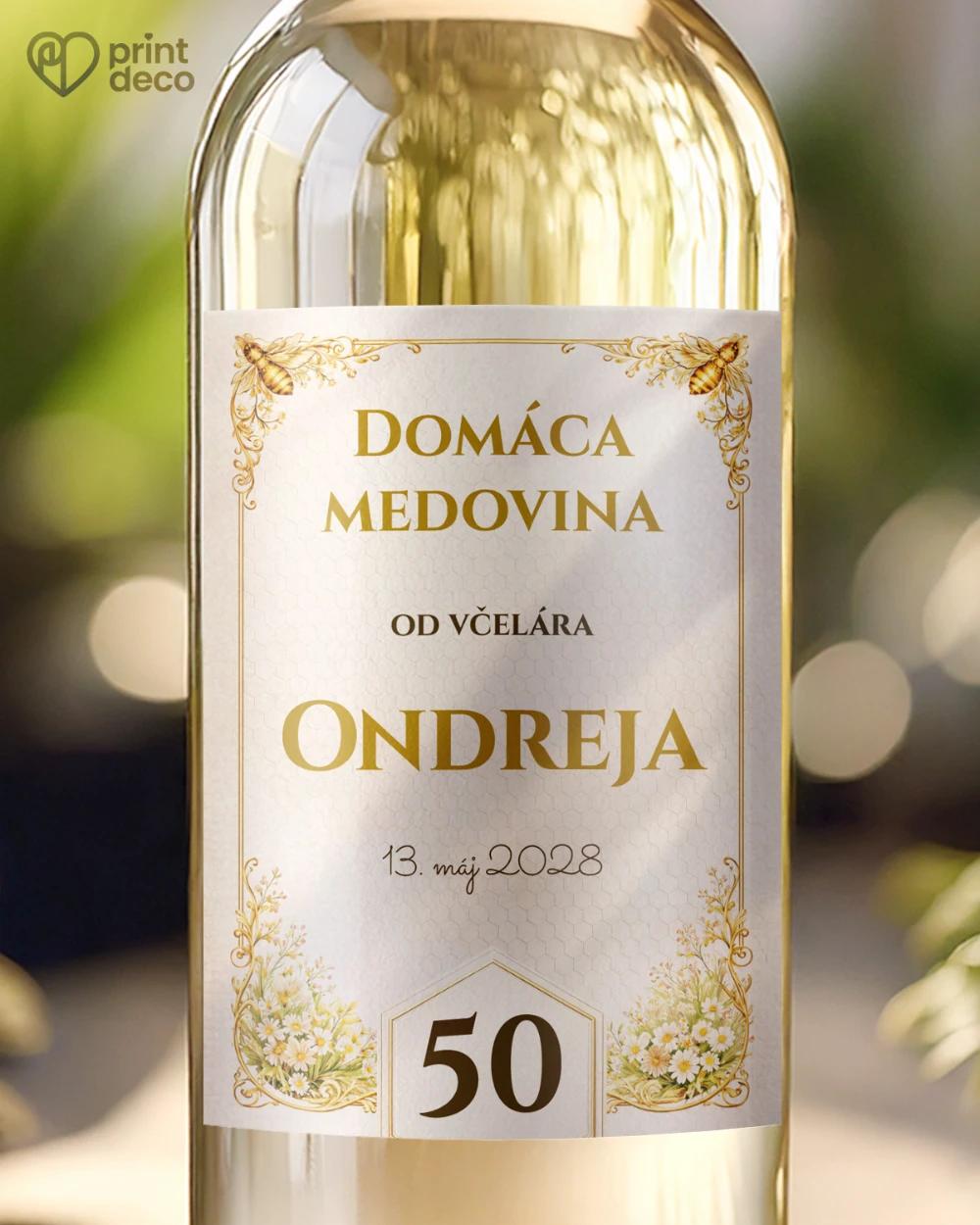 Elegantná pozvánka na narodeniny so zlatým včelím motívom a jemnými ornamentmi pôsobí slávnostne, zvýrazní výnimočnosť jubilea a ponúka úpravu zdarma cez online editor.