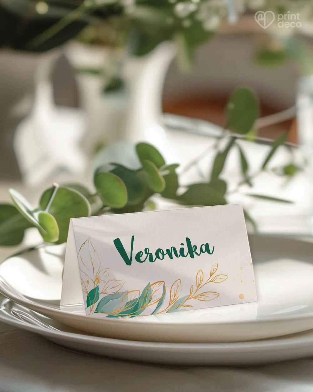 Zaujímavá pozvánka na oslavu narodenín v zelených a zlatých tónoch. Na pozvánke sa vyníma fotka oslávenca dozdobená zelenými lístkami a zlatými prvkami, ktorými je zdobená i celá pozvánka. V rovnakom motíve si viete u nás vybrať i menovky či etikety na fľaše, aby bolo všetko dokonale zladené.
