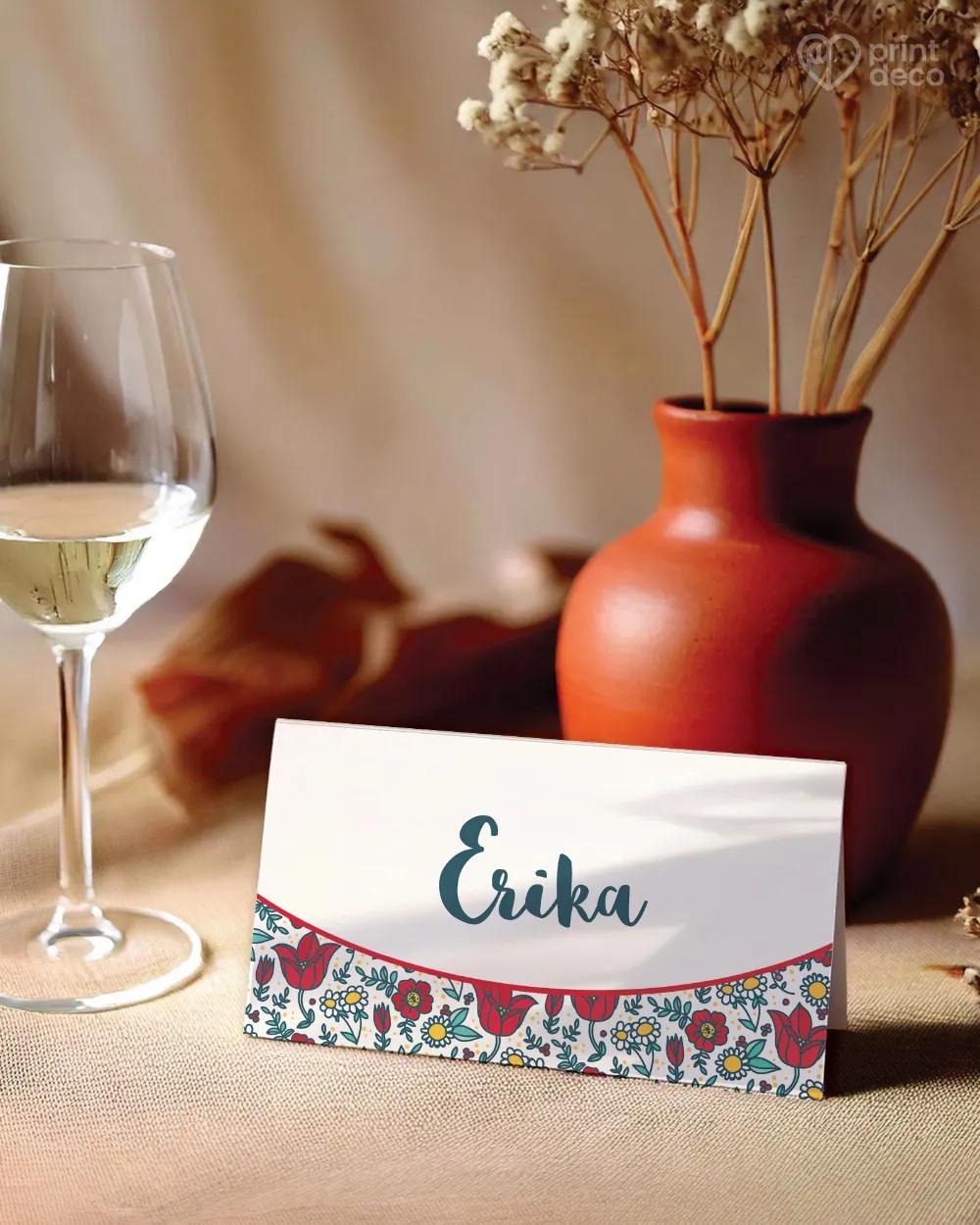 Pozvánka na narodeninovú oslavu vo folklórnom motíve s fotografiou oslávenca je dokonalou kombináciou tradície a osobného štýlu. Biele pozadie je dozdobené farebnými kvetmi v odtieňoch červenej, žltej a zelenej, ktoré rámujú centrálny veniec s fotografiou. Text pozvánky je zvýraznený elegantným rukopisným písmom a celkový vizuál pôsobí slávnostne, no zároveň srdečne a prirodzene. V rovnakom motíve si u nás môžete vybrať aj ďalšie tlačoviny – menovky, etikety na fľaše či pamätné magnetky – a celú oslavu tak dokonale zladiť.