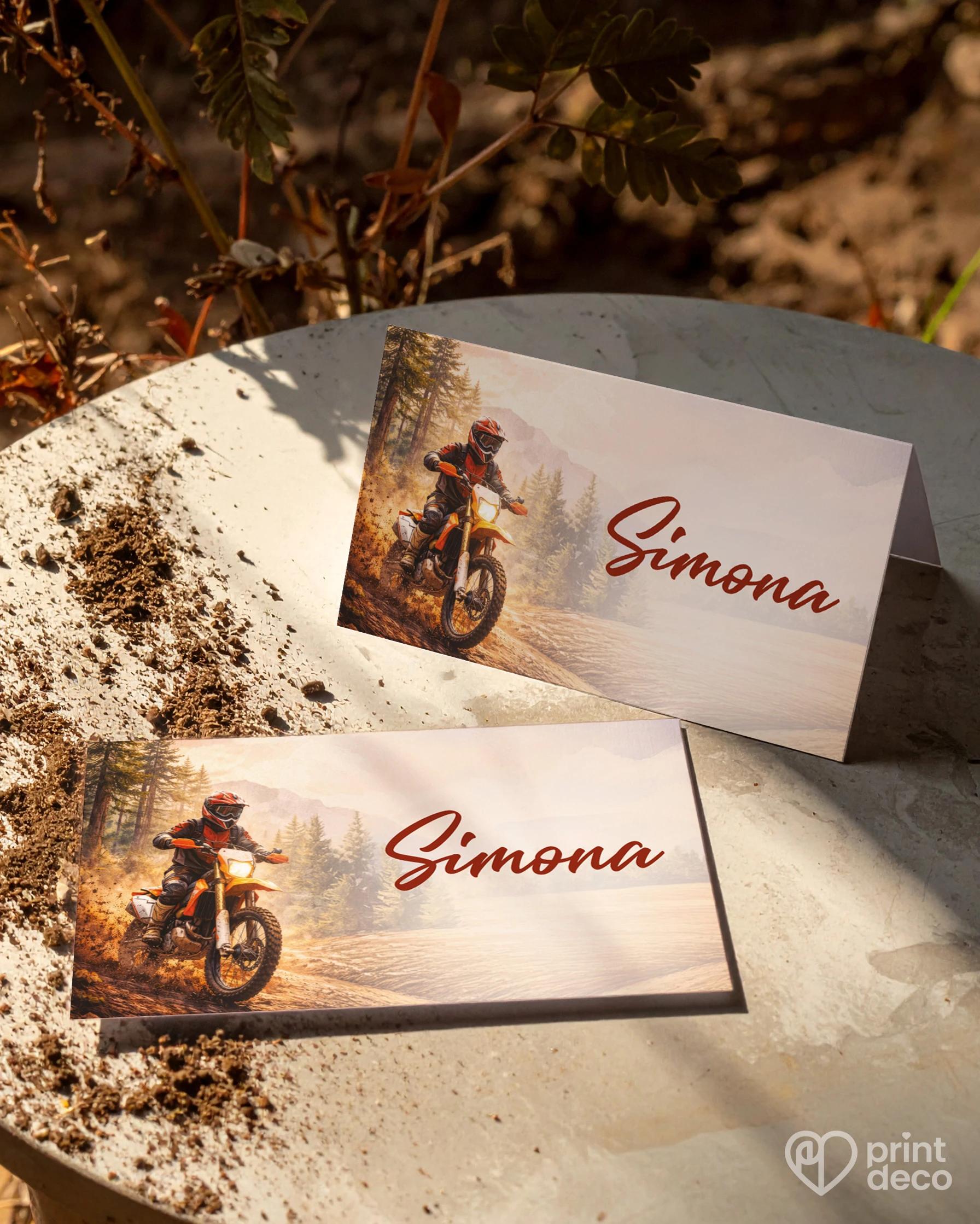 Vyberte si z dvoch praktických rozmerov – 90 × 50 mm (vhodné napríklad aj do stojanov) alebo 90 × 100 mm (s prehnutím do striešky, ktoré jednoducho postavíte na stôl) Dolaďte každý detail vašej rodinnej oslavy do poslednej bodky. Menovky sú dostupné v rovnakých motívoch ako pozvánky, etikety či ďalšie tlačoviny.