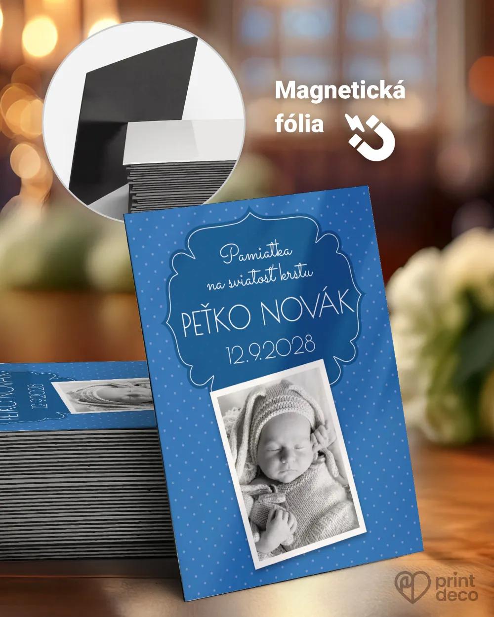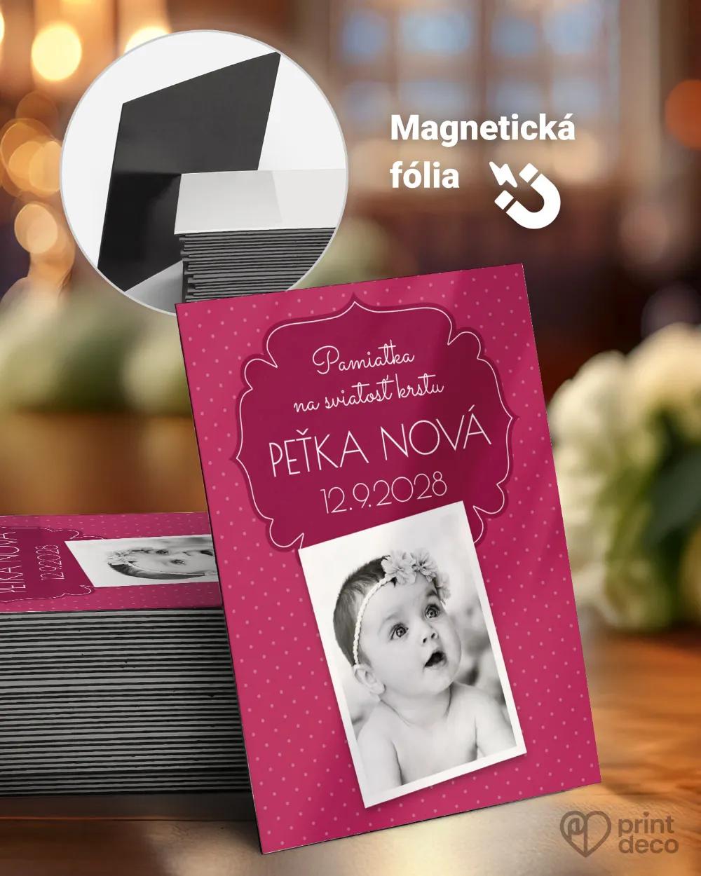Jednoduchá pozvánka ladená do ružovej alebo modrej farby, podľa toho, či ide o chlapca alebo dievča, doplnená fotkami bude skvelou voľbou najmä na krst, ale i na sviatosť prvého svätého prijímania, birmovky či konfirmácie. Keďže pozvánka neobsahuje žiadne sväté motívy, môže byť využitá i na vítanie občanov, ktoré organizuje obec. Doplniť ju môžete tiež ďalšími tlačovinami z našej ponuky, ako napríklad etiketami na fľaše či pamätnými magnetkami.