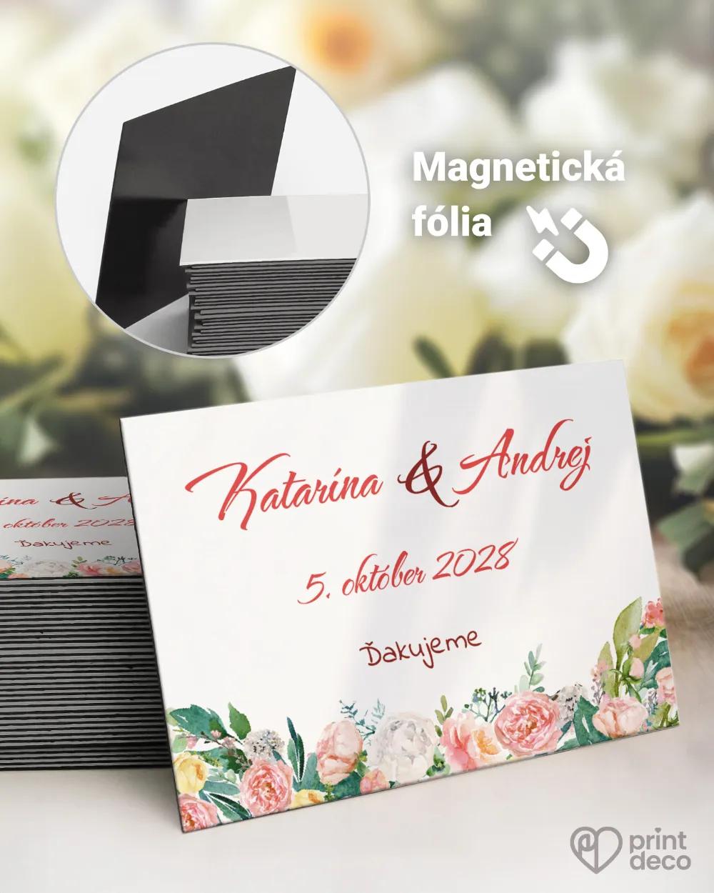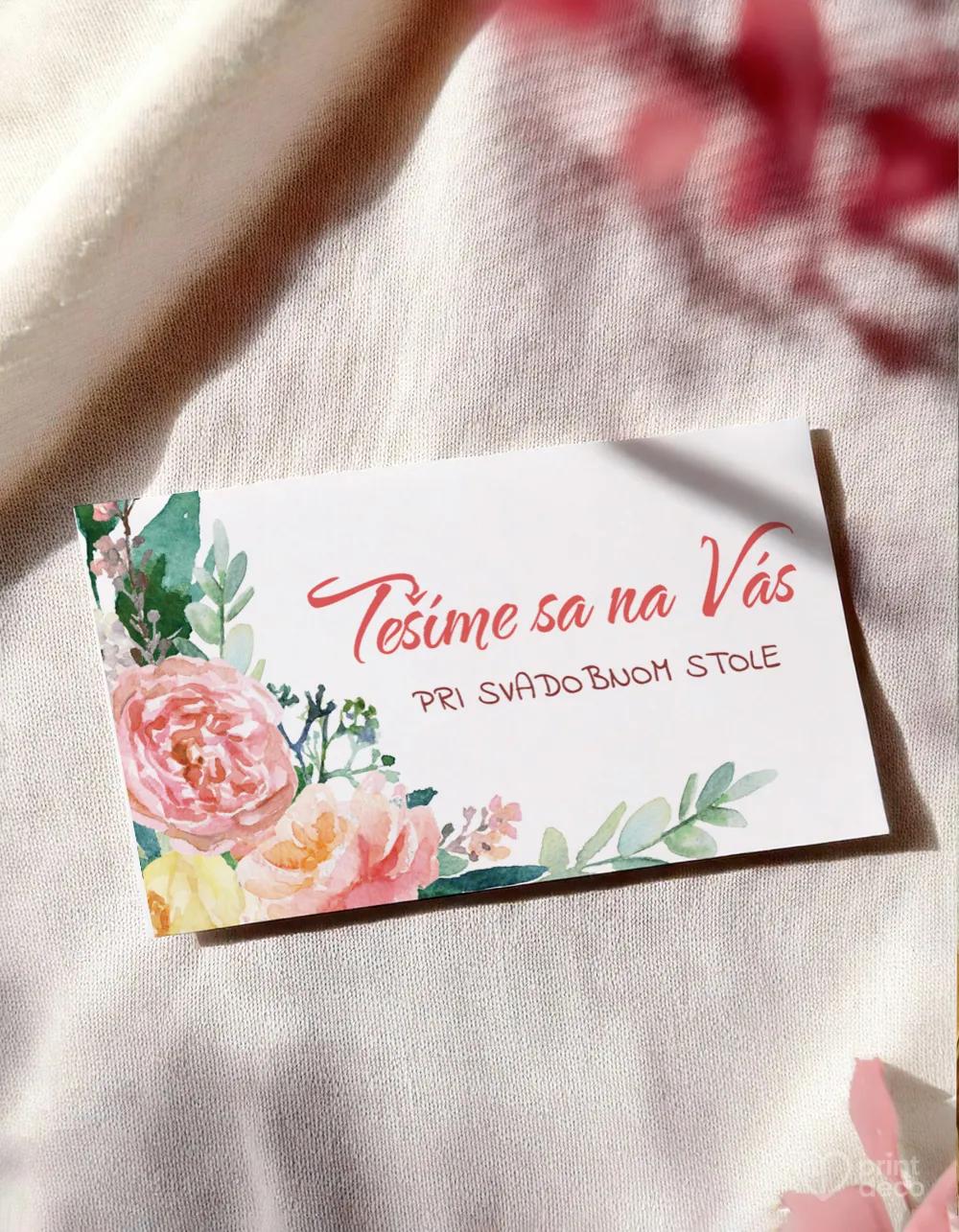 Svadobné číslovanie stolov je praktickým aj estetickým prvkom výzdoby, ktorý pomôže hosťom ľahko sa zorientovať a zároveň krásne dotvorí slávnostný stôl. Na výber máte jednostrannú verziu vhodnú do rámika alebo obojstrannú prehnutú do striešky, ktorá samostatne stojí na stole. Jemný romantický motív ružových a bielych ruží doplnených zeleňou dokonale ladí s elegantnými a romantickými svadbami. Kvalitná tlač, rýchla výroba a možnosť zladiť s ďalšími tlačovinami – menovkami, etiketami, magnetkami či menu – vám zaručia harmonický celok a nezabudnuteľný dojem.