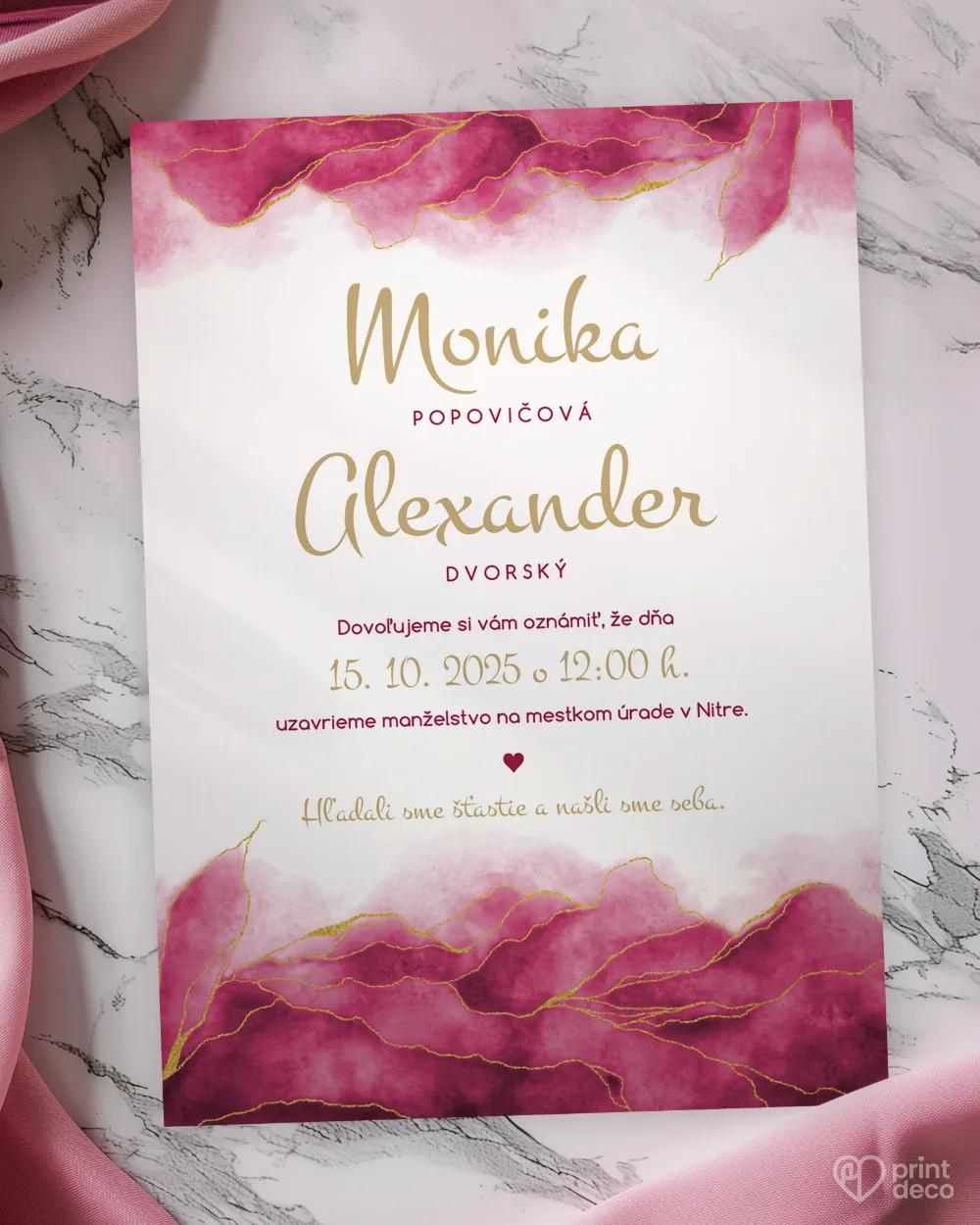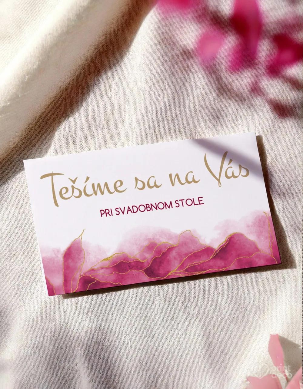 Štýlová svadobná magnetka v abstraktnom ružovom dizajne ako elegantná pamiatka pre hostí a originálny svadobný darček, ktorý pripomenie váš výnimočný deň.