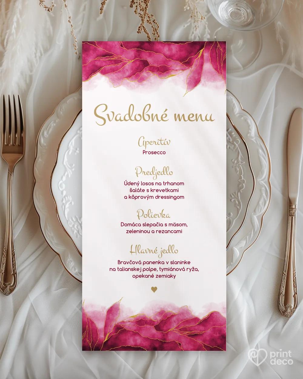 Elegantná svadobná magnetka s abstraktným ružovým motívom prepojeným jemnými zlatými linkami predstavuje originálny darček pre hostí a krásnu spomienku na vašu svadbu. Tento štýlový detail ocení každý hosť, ktorý si rád odnesie malú, no významnú pamiatku na váš veľký deň. Personalizácia menami a dátumom svadby dodáva magnetke jedinečný charakter a podčiarkne celkový dojem. Vysoká kvalita spracovania a moderný vzhľad zaručia estetickú hodnotu. Možno kombinovať s ďalšími tlačovinami v rovnakom motíve, ako sú etikety, menovky či menu. Doprajte hosťom darček, ktorý poteší a ozdobí.