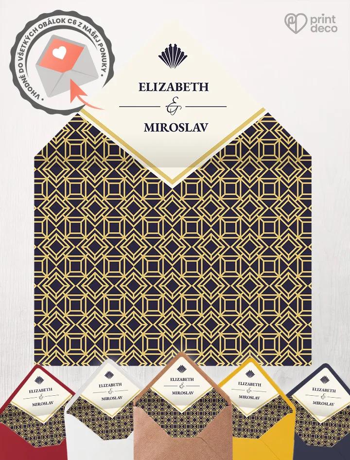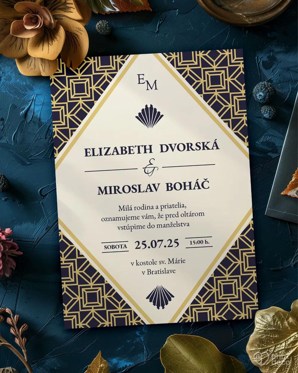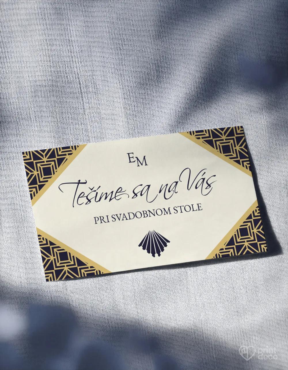 Štýlová svadobná magnetka v elegantnom art deco dizajne s geometrickými vzormi a zlatými detailmi ozdobí váš svadobný stôl a dodá mu noblesný šarm. Je krásnou pamiatkou na svadbu a originálnym darčekom pre hostí, ktorí si ju uchovajú ako spomienku na váš výnimočný deň. Vďaka personalizácii textu podľa vašich predstáv bude magnetka jedinečná a dokonale prispôsobená vašej výzdobe. Art deco motív sa hodí na svadby s prvkami elegancie a luxusu. Magnetku môžete zladiť aj s menovkami, etiketami, samolepkami či menu v rovnakom štýle. Objednajte si ich ešte dnes.