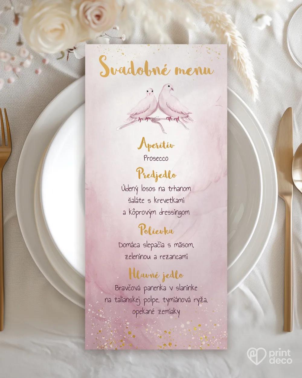 Štýlová svadobná magnetka s romantickým motívom dvoch holubíc a jemným zlatým zdobením dodá vášmu svadobnému stolu nádych elegancie a symboliky lásky. Je krásnou pamiatkou na svadbu a originálnym darčekom pre hostí, ktorí si ju uchovajú ako spomienku na váš výnimočný deň. Vďaka možnosti personalizácie textu podľa vašich želaní bude magnetka jedinečná a dokonale prispôsobená vašim predstavám. Holubičí motív harmonicky ladí s romantickou svadobnou výzdobou. Magnetku môžete zladiť aj s menovkami, etiketami, samolepkami či menu v rovnakom štýle. Objednajte si ich ešte dnes.