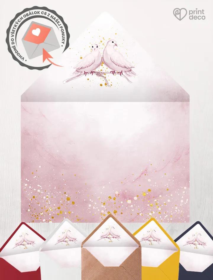 Svadobná magnetka s romantickým motívom holubíc a jemného zlatého zdobenia ako originálna pamiatka zo svadby a milý darček pre hostí plný symboliky a štýlu.