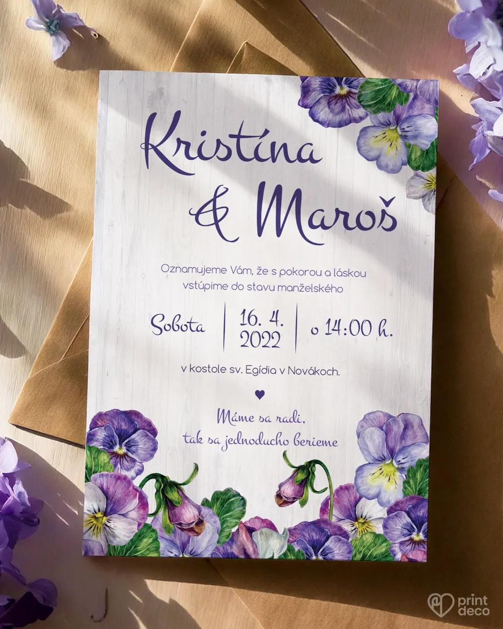 Originálna svadobná magnetka s jemným motívom fialiek ako milá pamiatka na svadbu a štýlový darček pre hostí, ktorý im pripomenie váš výnimočný deň.