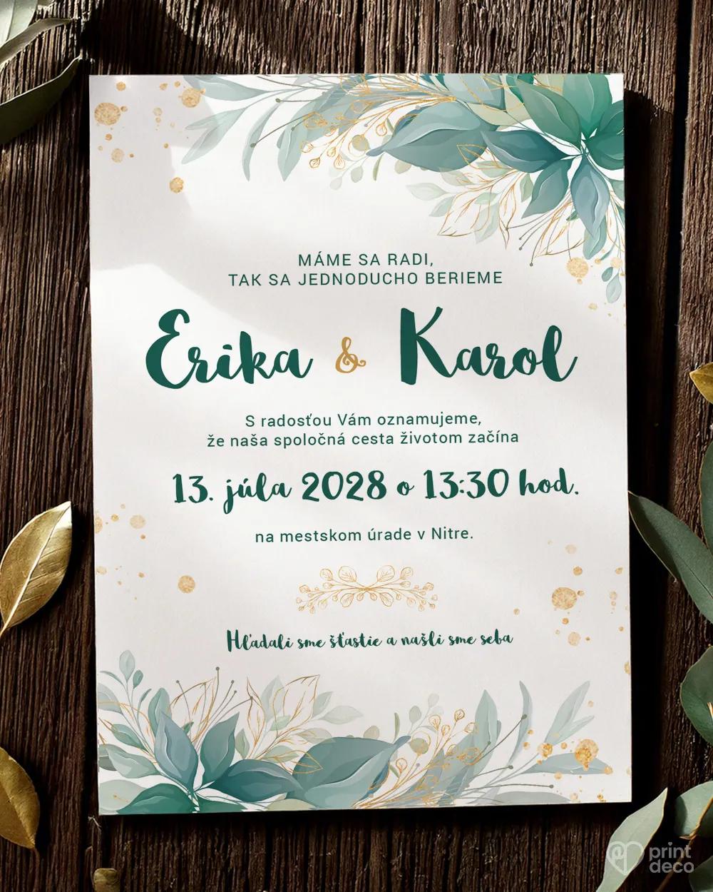 Štýlová svadobná magnetka s motívom greenery lístkov a zlatých akcentov v modernom prírodnom štýle poteší každého hosťa. Táto pamätná svadobná magnetka je originálnym a praktickým darčekom, ktorý uchová spomienku na váš svadobný deň. Personalizovaná úprava mien a dátumu vám umožní vytvoriť jedinečný dizajn presne podľa vašich predstáv. Vďaka sviežim farbám a kvalitnému spracovaniu zapadne do každej výzdoby. Navyše ju môžete zladiť s menovkami, menu či etiketami v rovnakom motíve. Objednajte si ešte dnes a očarte hostí štýlovým detailom.