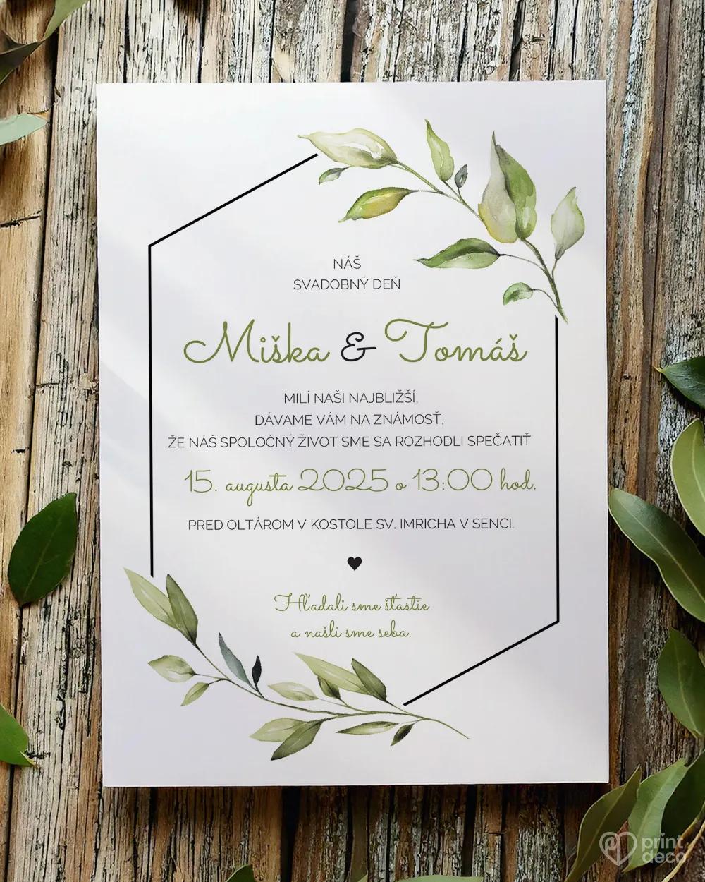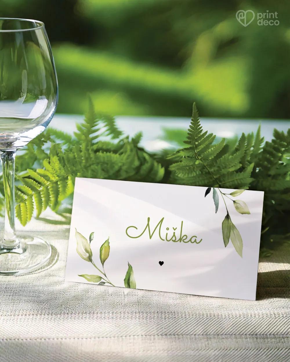 Elegantná svadobná magnetka v štýle greenery s jemnými lístkami ako originálny darček pre hostí a štýlová spomienka na váš výnimočný svadobný deň.