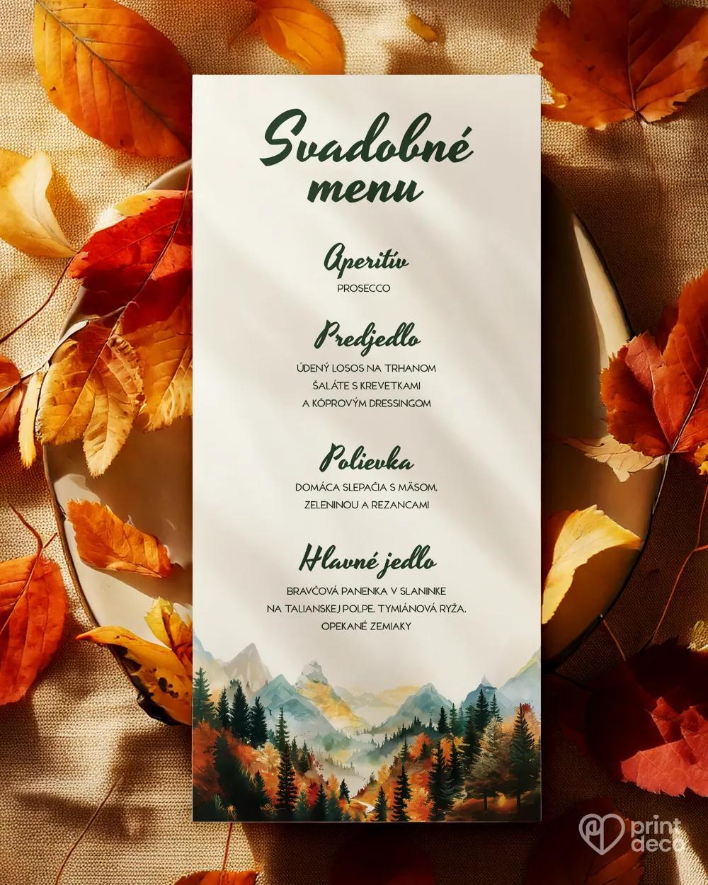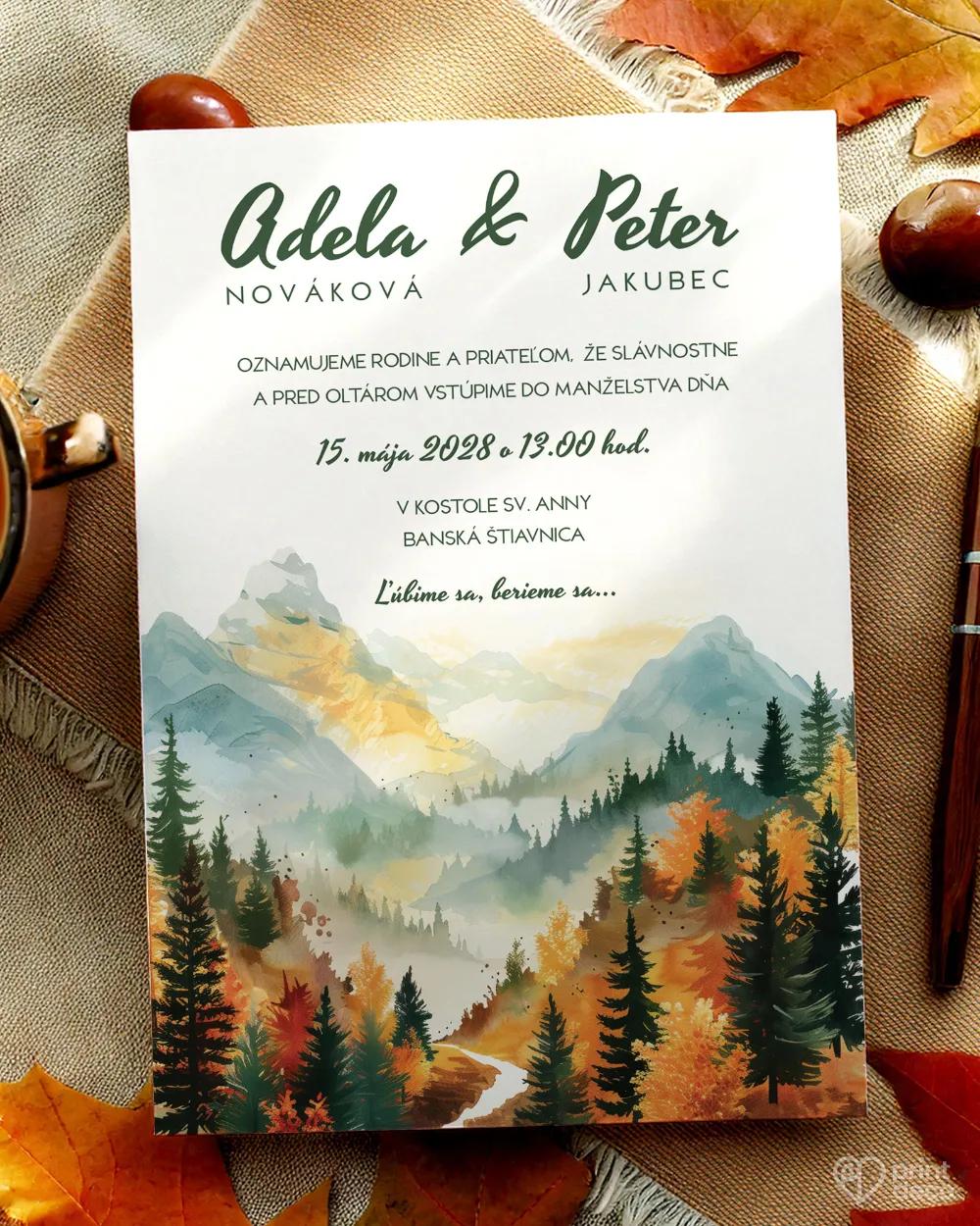 Štýlová svadobná magnetka s motívom jesennej horskej krajiny v teplých odtieňoch lesa a majestátnych štítov prinesie originálnu atmosféru vašej svadby. Táto pamätná magnetka na svadbu poteší každého hosťa ako krásna a praktická spomienka na váš spoločný deň. Možnosť personalizácie menami a dátumom zaručí, že magnetka bude jedinečne vaša. Elegantný dizajn a kvalitné spracovanie dodávajú magnetke vkusný vzhľad. Pre dokonalú harmóniu môžete zladiť aj ďalšie tlačoviny v rovnakom motíve, napríklad etikety či menovky. Nechajte si vyrobiť magnetky, ktoré očaria hostí.