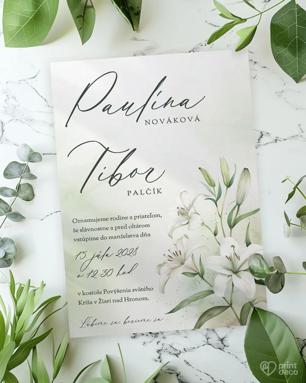 Svadobná magnetka s bielymi ľaliami, jemná a elegantná pamiatka pre hostí na váš svadobný deň plný čistoty, lásky a harmónie.