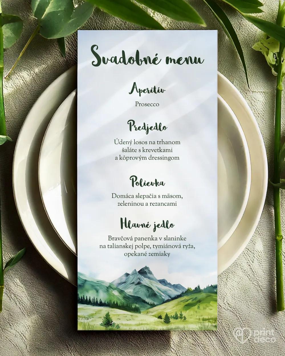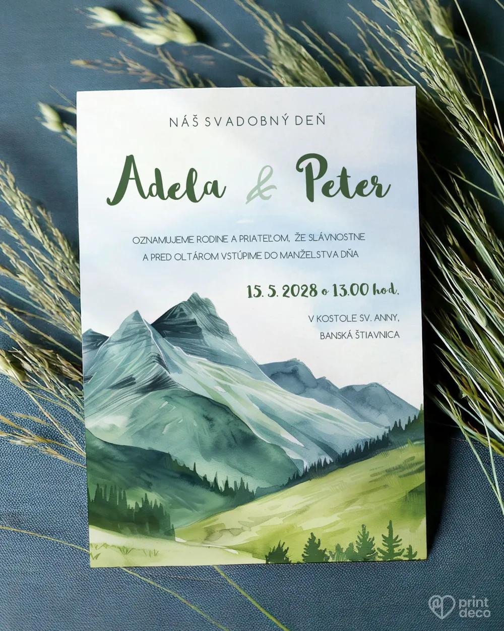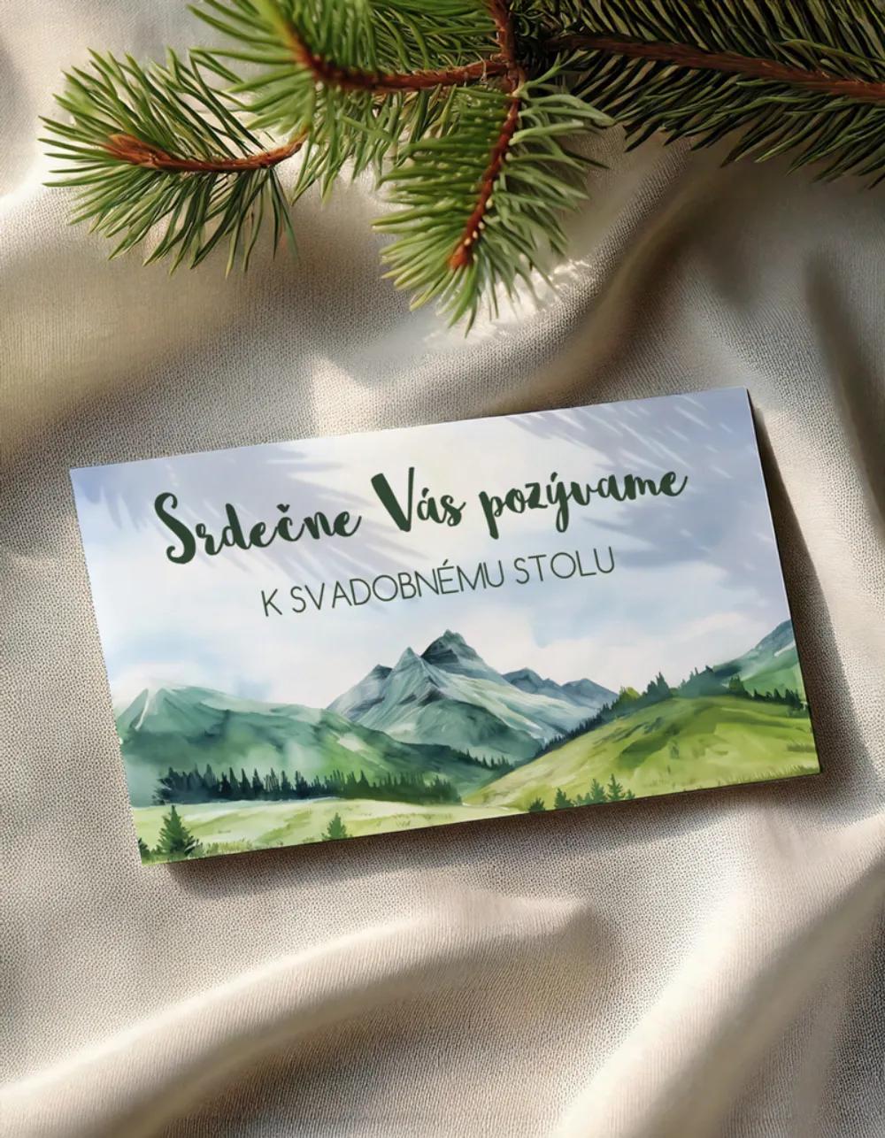 Personalizovaná svadobná magnetka s motívom majestátnych zelených hôr ako originálny darček pre hostí a milá pamiatka zo svadby na tento výnimočný deň.