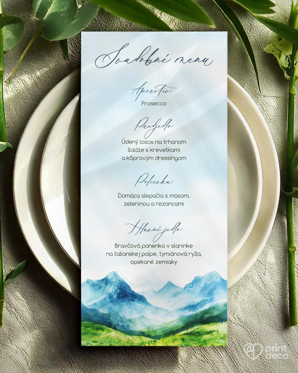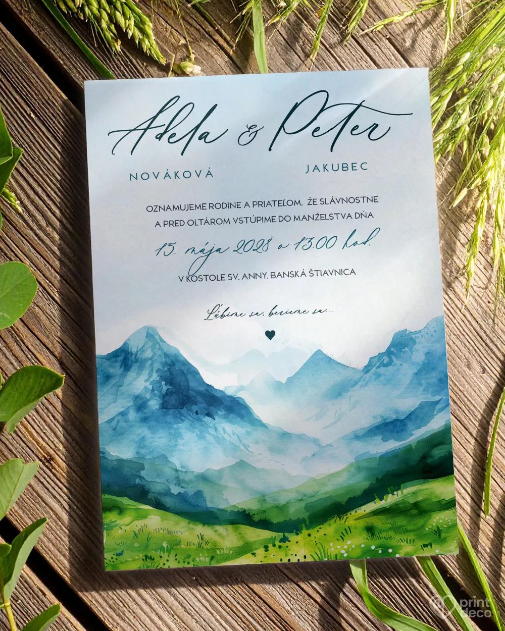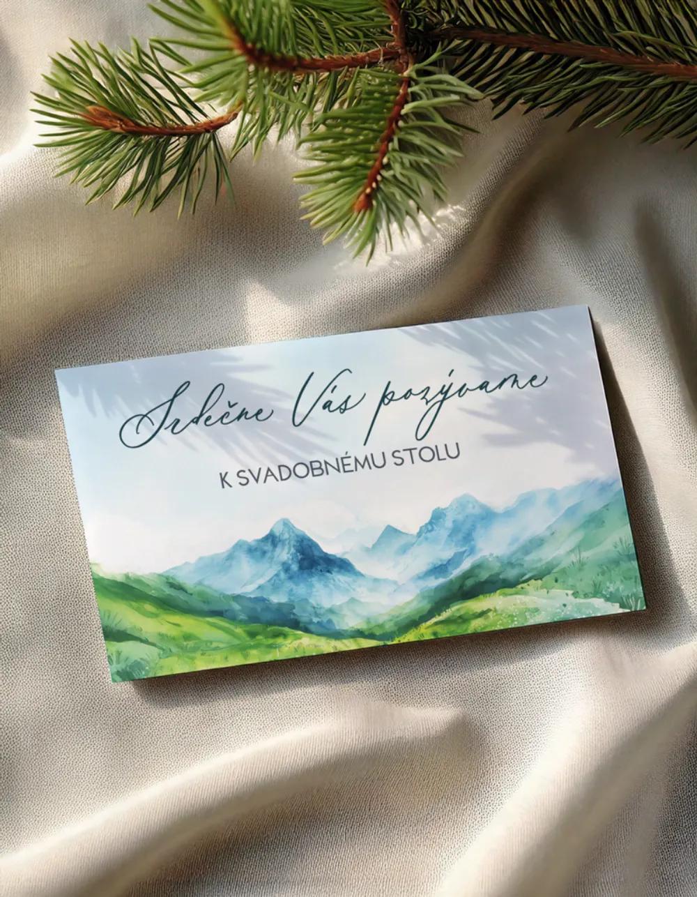 Štýlová svadobná magnetka s jemným akvarelovým motívom horskej krajiny v odtieňoch zelene a modrej dodá vašej svadbe nádych elegancie a prírody. Táto originálna magnetka na svadbu je krásnou pamiatkou a milým darčekom pre vašich hostí. Vďaka možnosti personalizácie textu menami a dátumom sa stane jedinečným spomienkovým predmetom. Precízne spracovanie a kvalitná tlač zaručujú dokonalý estetický dojem. Motív môžete zladiť aj s ďalšími tlačovinami, ako sú etikety na víno, menu či menovky. Doprajte hosťom magnetku, ktorá im svadobný deň pripomenie.