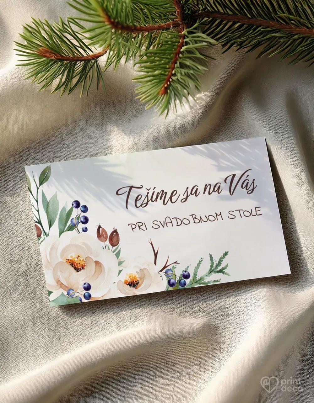Originálna svadobná magnetka s lesným motívom, jemnými bielymi kvetmi a parohami symbolizuje lásku k prírode a výnimočný štýl. Tento dizajn sa hodí na rustikálne, lesné či poľovnícke svadby a pôsobí pritom elegantne a decentne. Magnetka s menami a dátumom vášho svadobného dňa poteší hostí ako milá pamiatka. Možno ju zladiť aj s ďalšími tlačovinami rovnakého motívu pre jednotný vzhľad výzdoby.