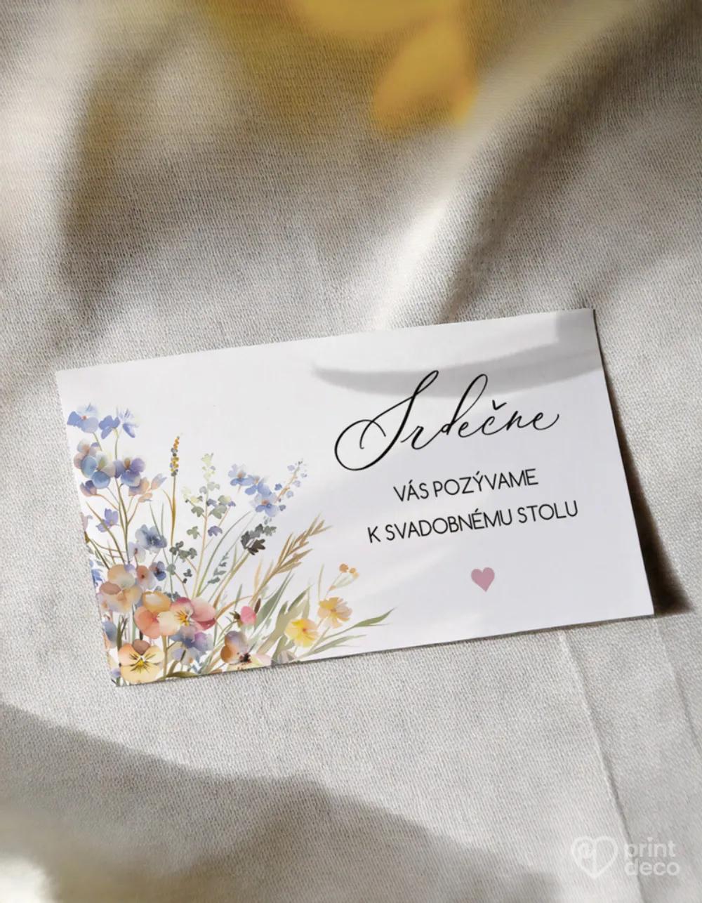 Svadobná magnetka s lúčnymi kvetmi v jemných pastelových tónoch ako nežná pamiatka pre hostí na váš výnimočný svadobný deň plný lásky a kvetov.