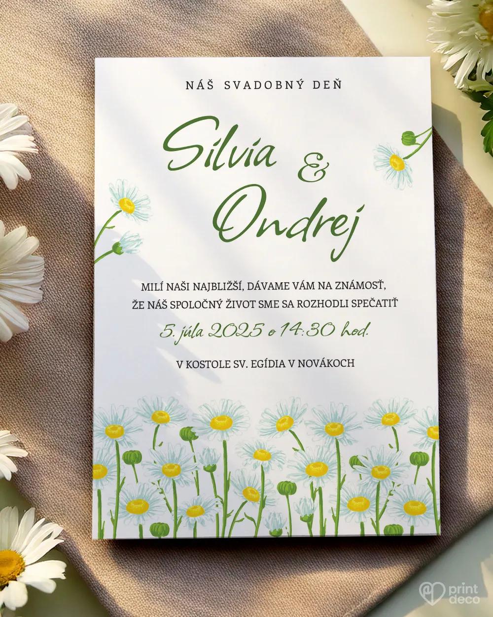 Štýlová svadobná magnetka so sviežim motívom lúčnych sedmokrások je originálnym darčekom pre hostí a krásnou spomienkou na váš svadobný deň. Vďaka jemnému kvetinovému dizajnu si ju každý rád odloží ako pamiatku. Magnetka je personalizovaná menami a dátumom svadby, čo z nej robí výnimočný detail vašej výzdoby. Kvalitná tlač a moderný vzhľad dodávajú eleganciu. Môžete ju doladiť aj s ďalšími tlačovinami v rovnakom štýle, ako sú menovky, etikety či svadobné menu. Doprajte hosťom milú pozornosť, ktorá ich úprimne poteší.