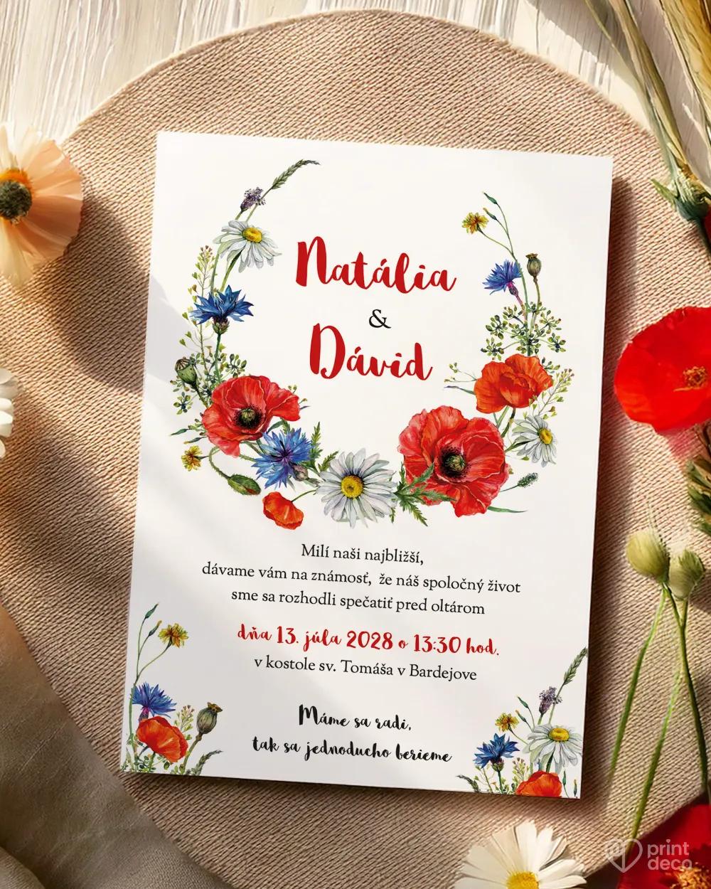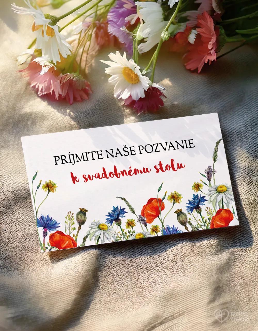 Jemná svadobná magnetka s krásnym motívom lúčnych a poľných kvetov je ideálnym spôsobom, ako hosťom poďakovať za účasť na vašom veľkom dni. Personalizovaná menami a dátumom svadby sa stane štýlovou spomienkou na nezabudnuteľné chvíle. Vďaka harmonickej kombinácii farieb a romantickému nádychu sa magnetka hodí k vidieckej, rustikálnej či prírodne ladenej svadbe. Skombinujte ju s ďalšími svadobnými tlačovinami rovnakého motívu a nechajte svoju výzdobu ladiť do posledného detailu.