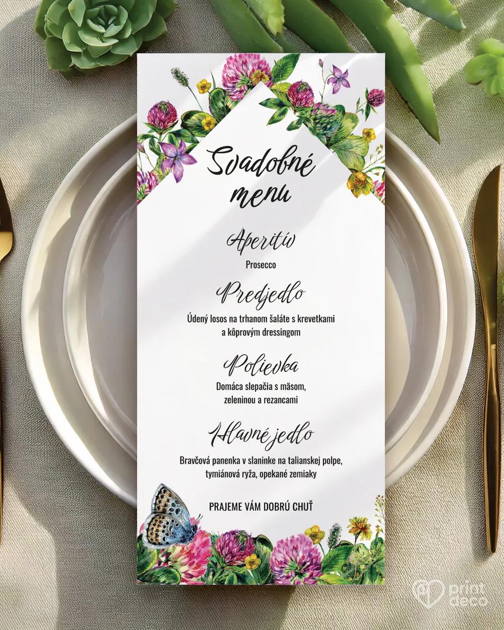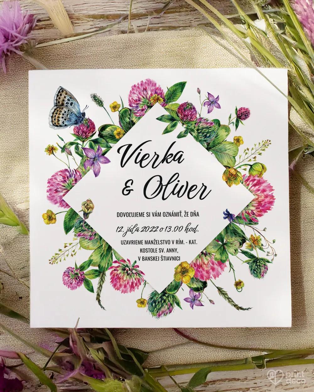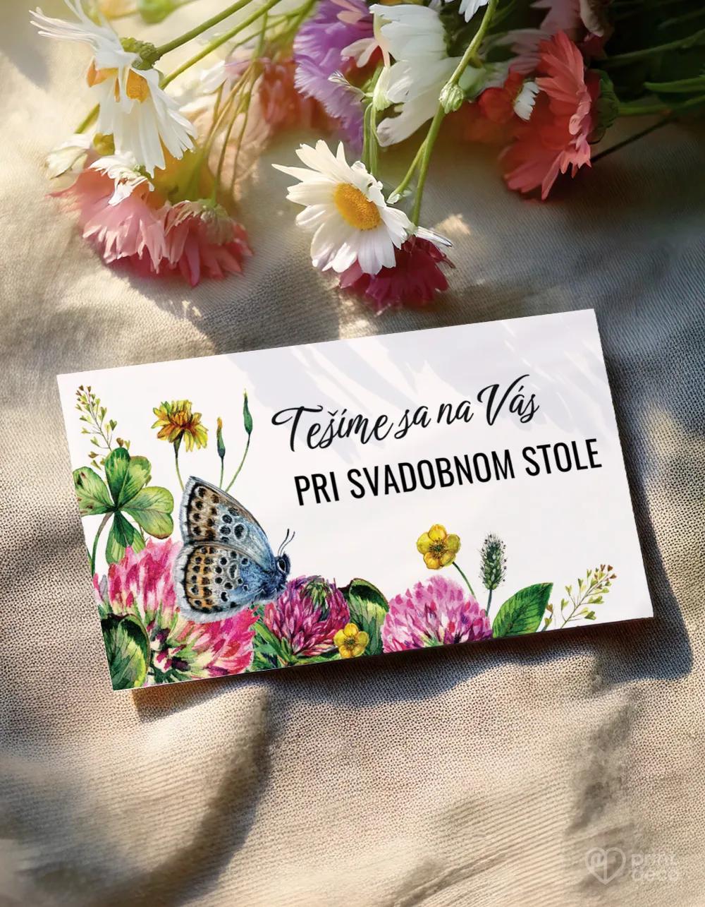 Elegantná svadobná magnetka s jemným motívom poľných kvetov a modrého motýľa očarí každého hosťa. Tento dizajn je ideálny na romantické letné či rustikálne svadby, vnesie do výzdoby sviežosť a ľahkosť. Magnetka s menami a dátumom vášho svadobného dňa je milým spôsobom, ako hosťom poďakovať a zanechať im krásnu spomienku. Možno ju zladiť s ďalšími tlačovinami rovnakého motívu pre dokonalý súlad.