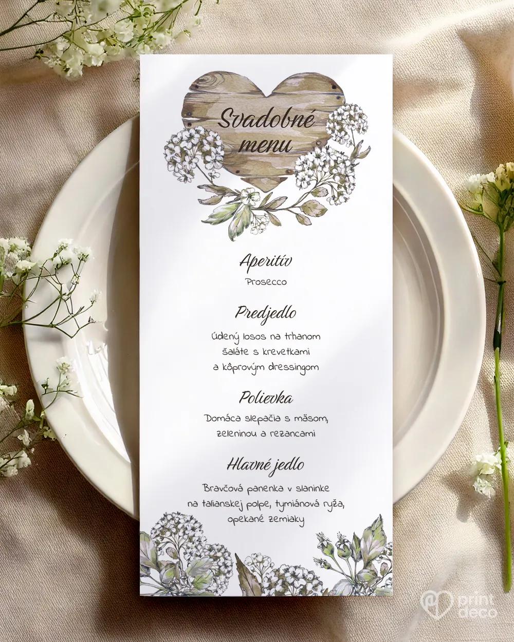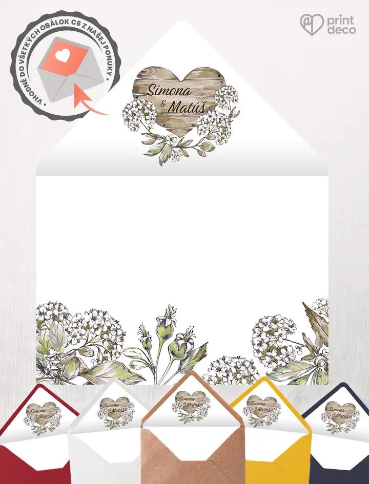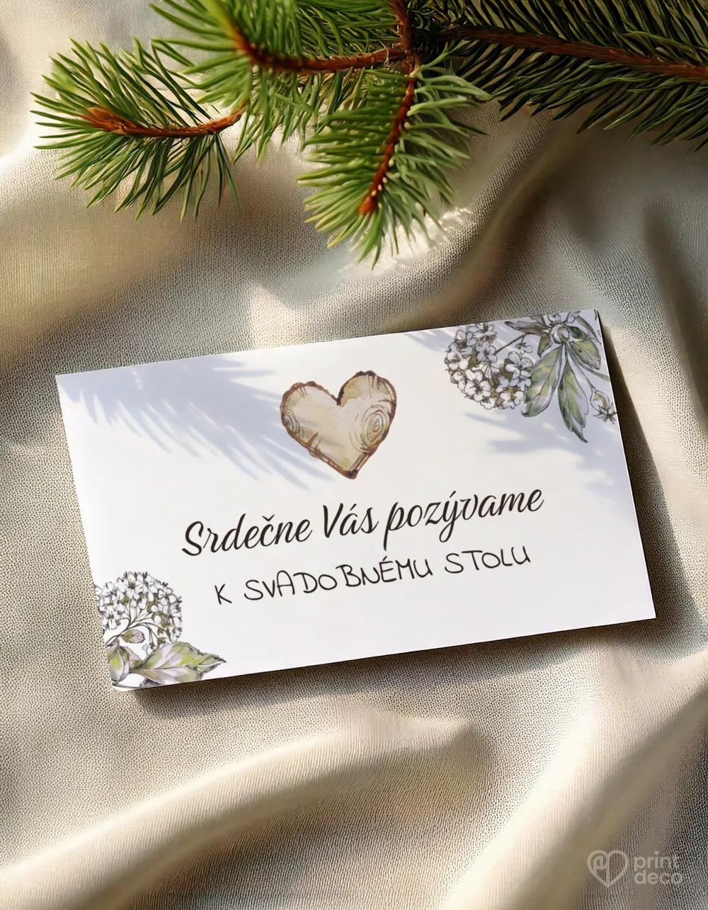 Štýlová svadobná magnetka s rustikálnym motívom dreveného srdca obklopeného jemnými bielymi kvetmi nádherne zapadne k vidieckej či prírodnej svadbe. Je to milá pamiatka pre každého hosťa, ktorá im pripomenie váš veľký deň. Vďaka možnosti doplniť vlastný text a dátum sa stáva jedinečnou a osobnou dekoráciou. Elegantné spracovanie a kvalitná tlač zaručia dokonalý dojem. Motív ľahko doladíte aj k ďalším svadobným tlačovinám v rovnakom štýle. Potešte svojich hostí touto pamätnou magnetkou.