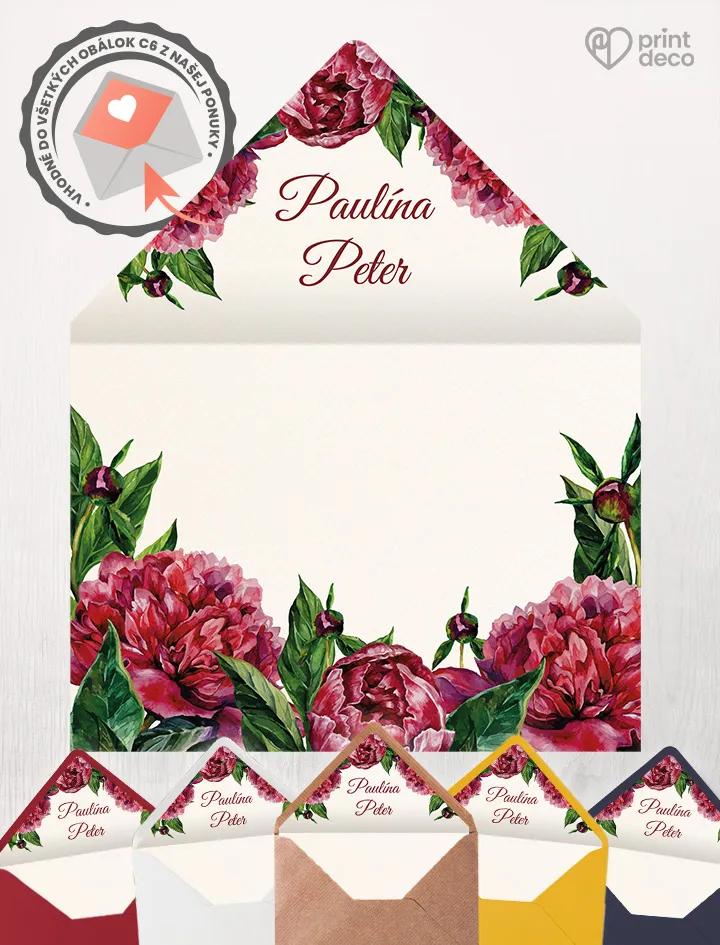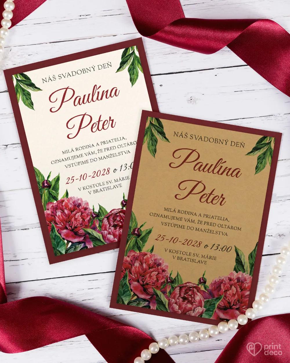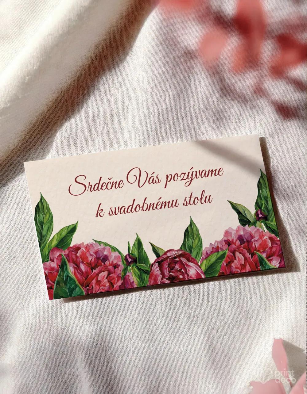Štýlová svadobná magnetka s elegantným kvetinovým motívom bordových pivoniek prinesie nádych luxusu a romantiky na váš svadobný stôl. Je krásnou pamiatkou na svadbu a originálnym darčekom pre hostí, ktorí si ju radi uchovajú ako spomienku na váš výnimočný deň. Vďaka personalizácii textu podľa vašich želaní bude magnetka jedinečná a dokonale prispôsobená vašim predstavám. Bohatý dizajn s pivonkami skvele ladí so svadobnou výzdobou v elegantnom štýle. Magnetku môžete zladiť aj s menovkami, etiketami, samolepkami či menu v rovnakom motíve. Objednajte si ich ešte dnes.