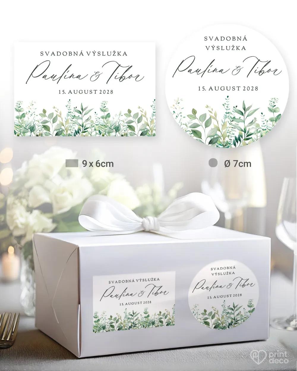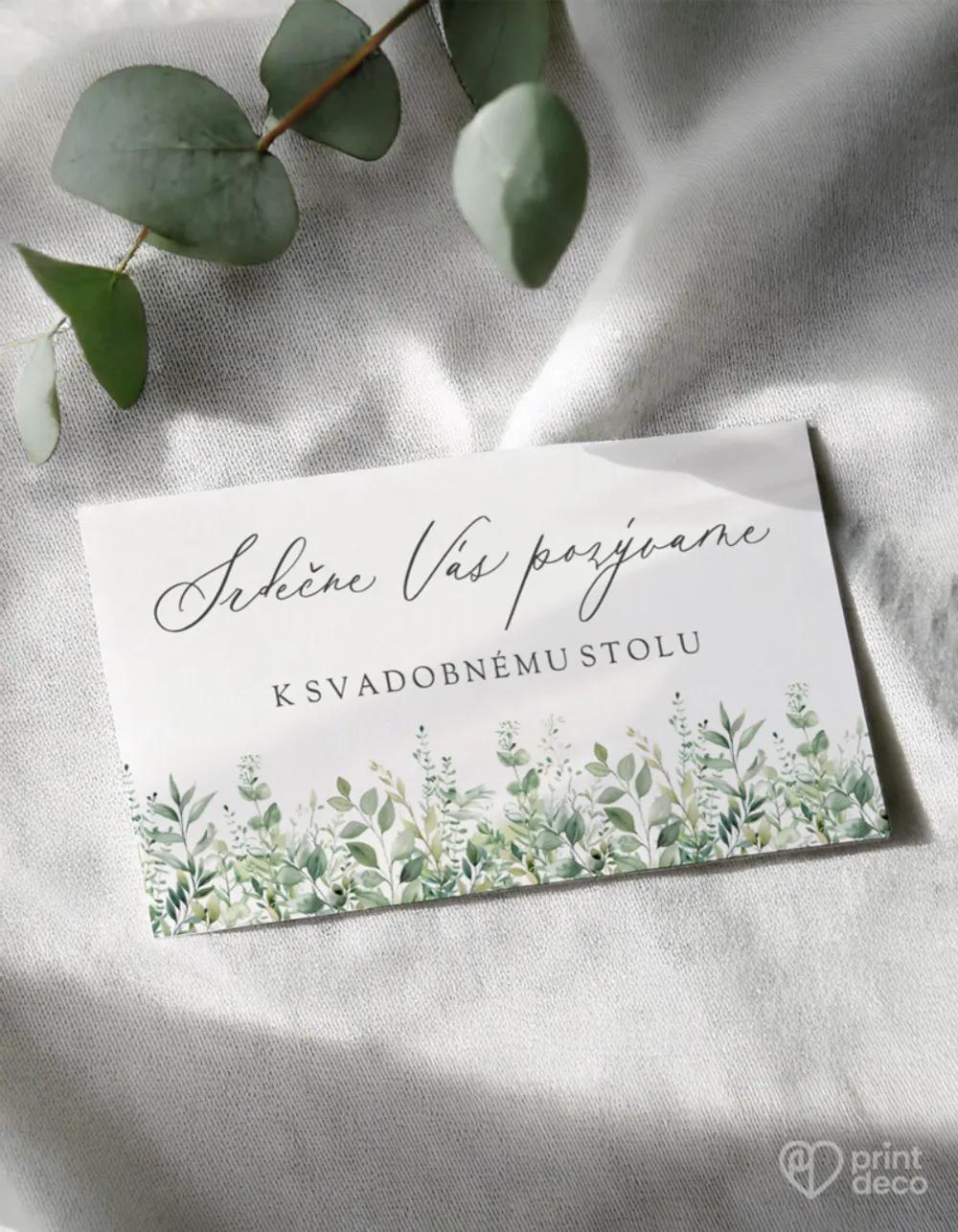 Svadobná magnetka v prírodnom štýle greenery s listami a zeleňou, elegantná pamiatka pre hostí na váš svadobný deň plný harmónie a sviežosti.