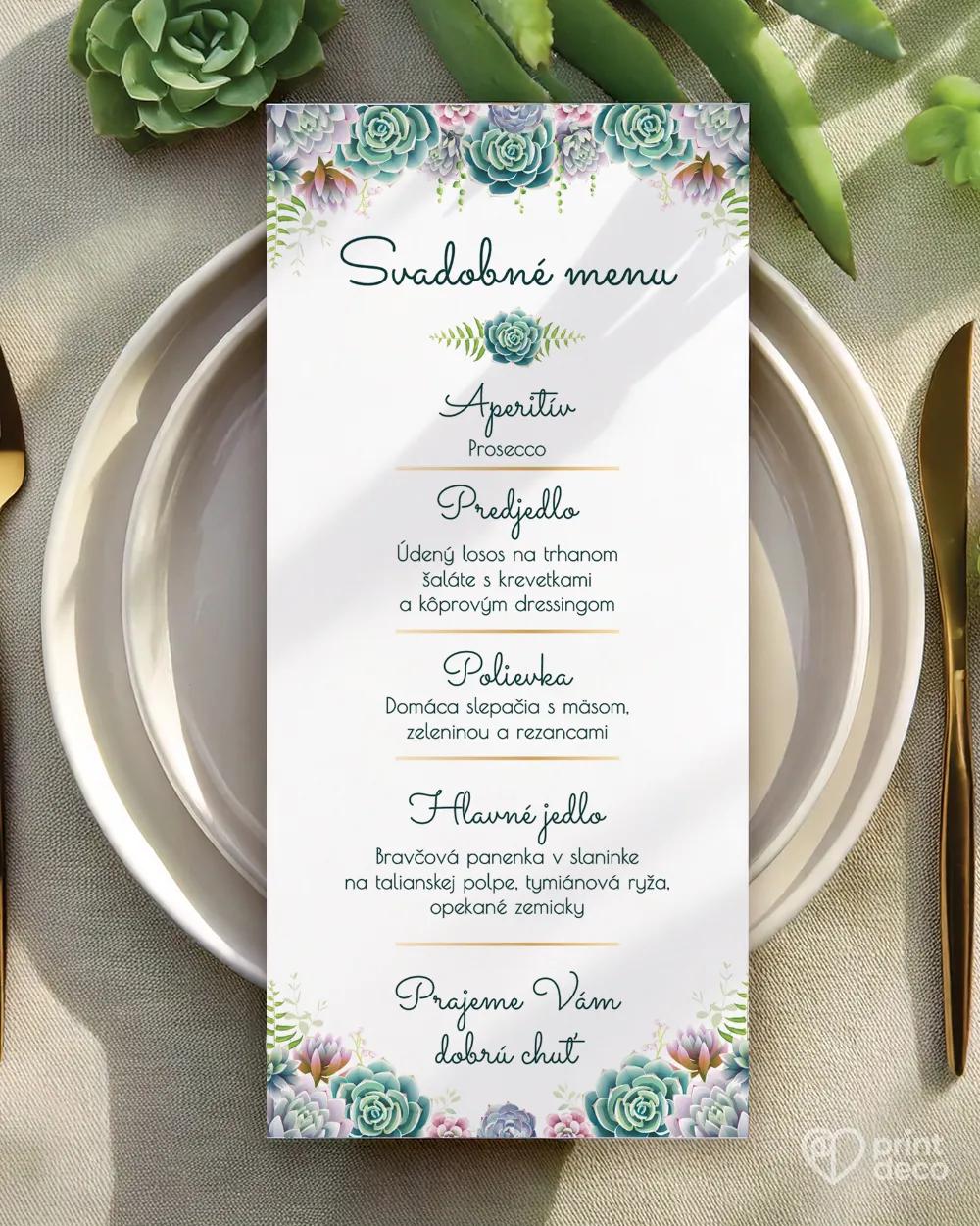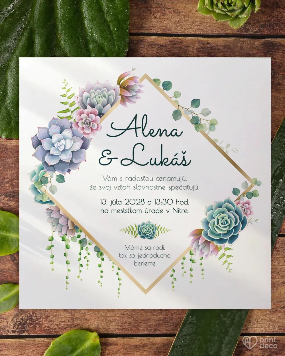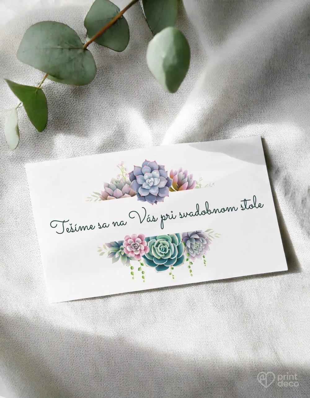 Originálna svadobná magnetka s motívom sviežich sukulentov ako štýlová pamiatka na svadbu a milý darček pre hostí plný zelenej elegancie.