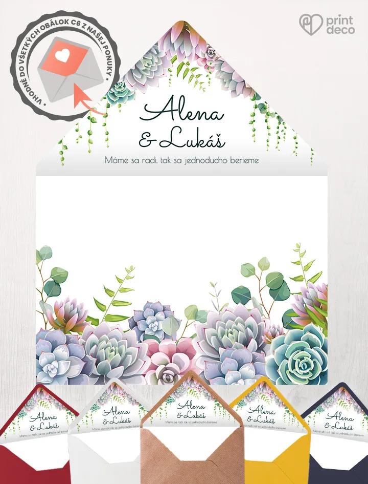 Štýlová svadobná magnetka s moderným motívom farebných sukulentov prináša sviežosť a originalitu do vašej výzdoby. Táto pamätná svadobná magnetka je skvelým spôsobom, ako hosťom pripomenúť váš veľký deň a zároveň im darovať praktickú spomienku. Personalizácia menami a dátumom svadby dodá magnetke jedinečný charakter a hodnotu. Vyniká kvalitným spracovaním, vďaka ktorému pôsobí elegantne a nadčasovo. Magnetku môžete zladiť aj s ďalšími tlačovinami v rovnakom motíve – etikety, menovky či menu. Objednajte si originálny darček pre hostí ešte dnes.
