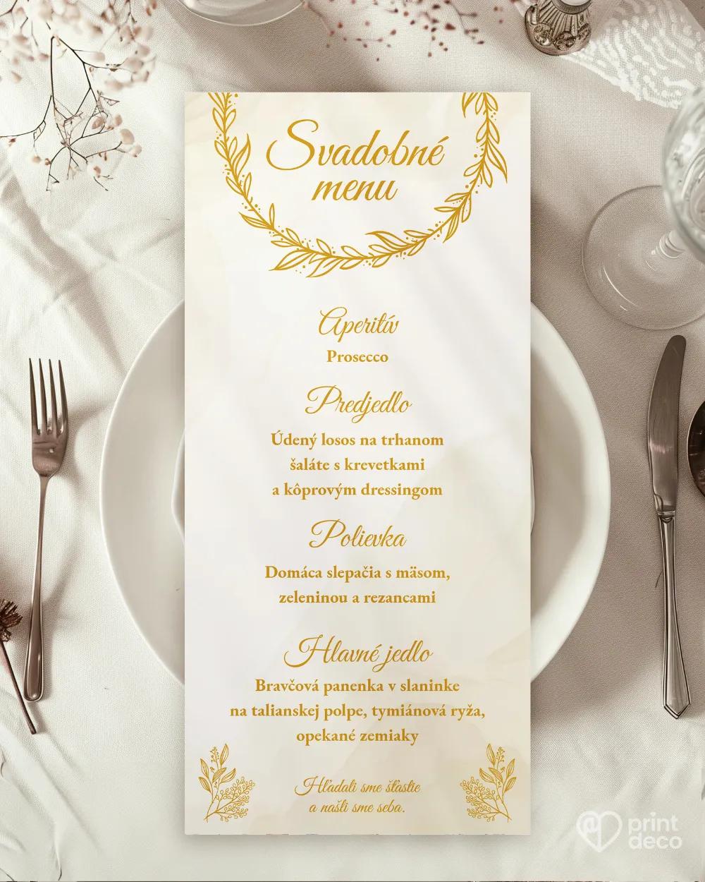 Luxusná svadobná magnetka s motívom zlatého venčeka predstavuje jedinečný a štýlový darček pre hostí, ktorý im pripomenie váš výnimočný deň. Magnetka je personalizovaná menami a dátumom svadby, čo jej dodáva osobitý a nezameniteľný charakter. Vysoká kvalita tlače a elegantný dizajn zabezpečujú krásny estetický dojem. Tento jemný motív možno jednoducho zladiť s ďalšími svadobnými tlačovinami, ako sú menovky, etikety či menu, pre harmonický vzhľad celej svadby. Doprajte svojim hosťom darček, ktorý bude milou spomienkou na celý život.