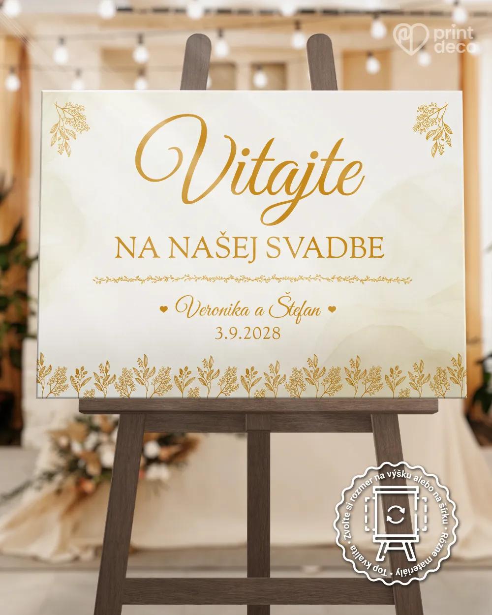 Elegantná svadobná magnetka so zlatým venčekom ako originálny darček pre hostí a krásna spomienka na váš svadobný deň plný lásky a radosti.