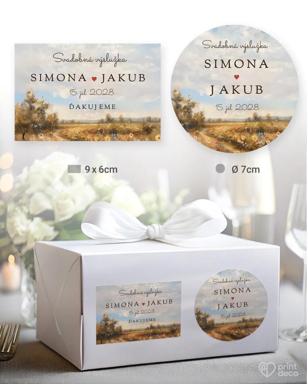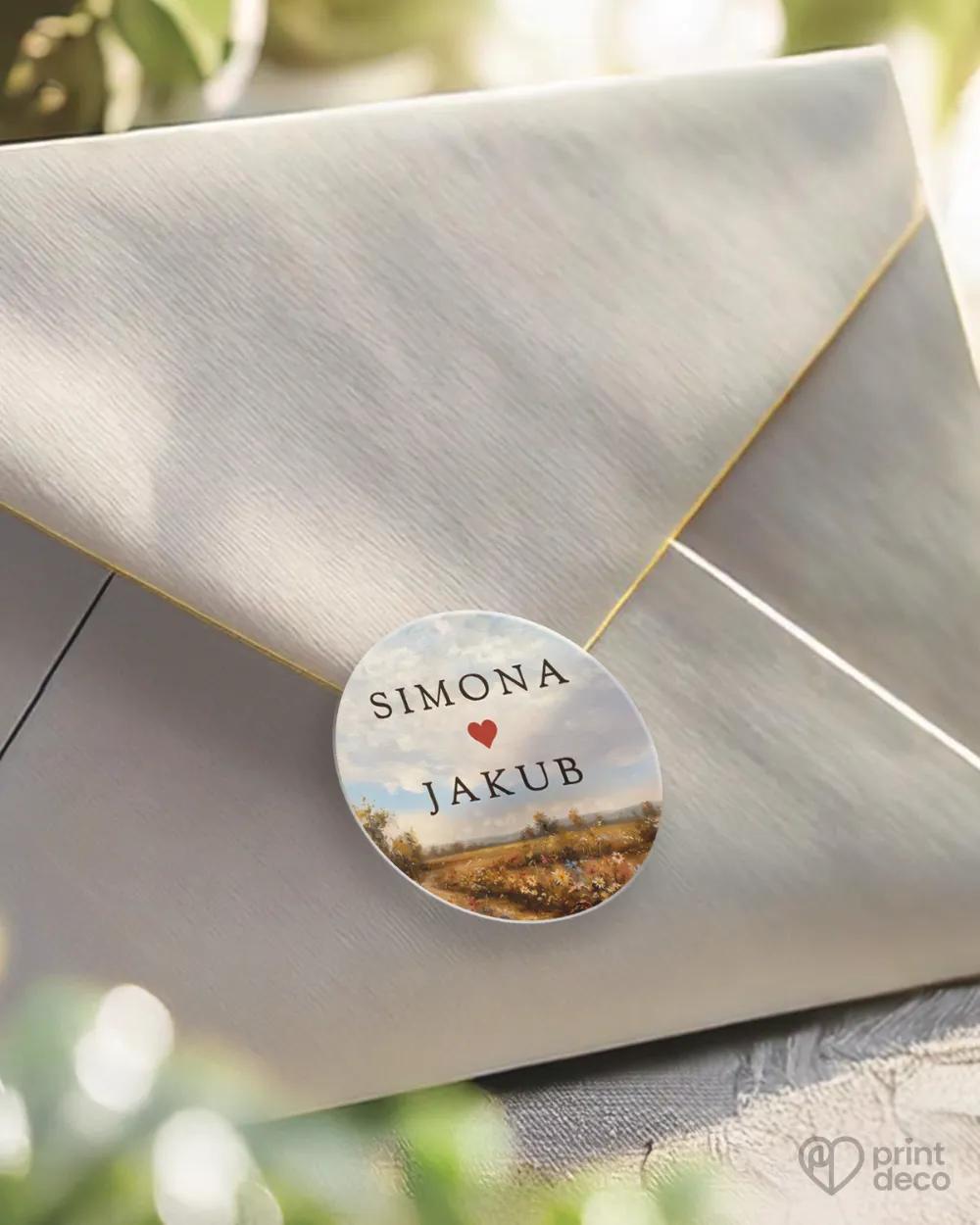 Kruhová kovová svadobná magnetka s motívom romantickej maľovanej lúky v teplých prírodných tónoch s kvetmi a oblohou očarí každého hosťa a uchová im spomienku na váš veľký deň. Personalizovaná menami snúbencov a dátumom svadby sa hodí k rustikálnym, boho aj elegantným svadbám. Jemný umelecký štýl podčiarkuje výnimočnú atmosféru a láskyplné chvíle, ktoré ste spolu prežili. Magnetka je ideálnym doplnkom výslužky alebo originálnym darčekom pre hostí, ktorý poteší a ozdobí.