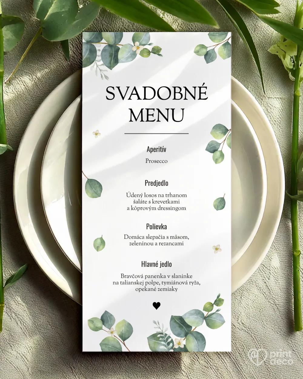 Svadobné oznámenie s eukalyptom pre jemnú a romantickú svadbu v prírodnom štýle. Elegantný motív plný harmónie a vkusu.