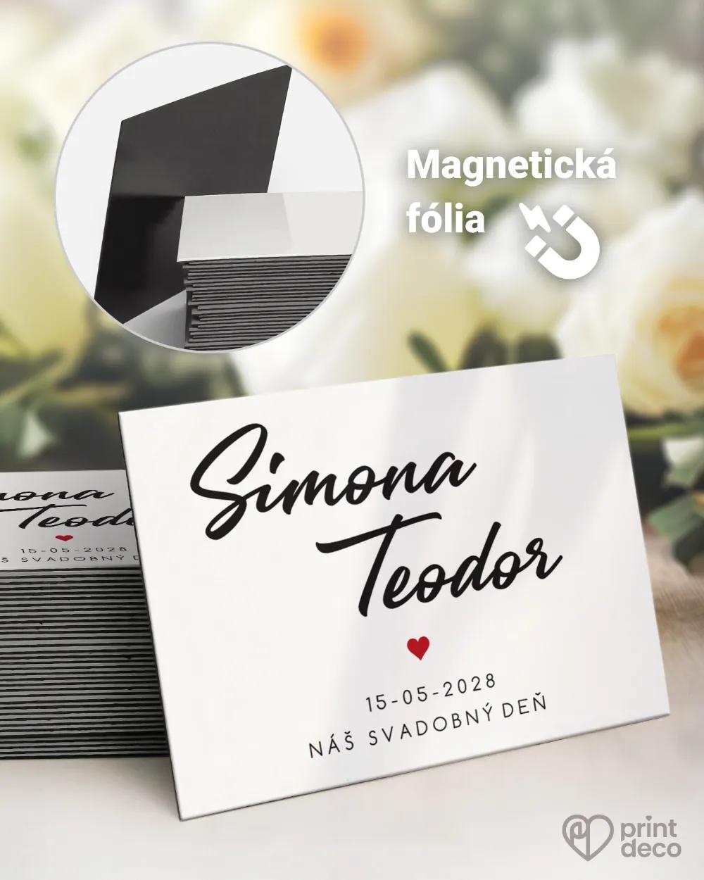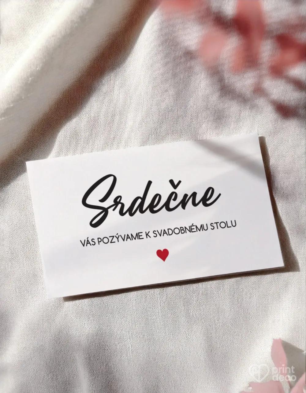 Svadobné oznámenie v modernom minimalistickom dizajne s kontrastným rukopisným písmom a čistým bielym pozadím pôsobí elegantne a nadčasovo. Jemný detail v podobe červeného srdiečka pridáva romantický akcent a podčiarkuje jednoduchosť celkového vizuálu. Ideálna voľba pre páry, ktoré preferujú čistý, decentný a zároveň štýlový dizajn svadobných tlačovín. V rovnakom dizajne sú dostupné aj svadobné tlačoviny, ako menovky, menu, etikety, pozvánky k stolu, samolepky a veľa ďalšieho.