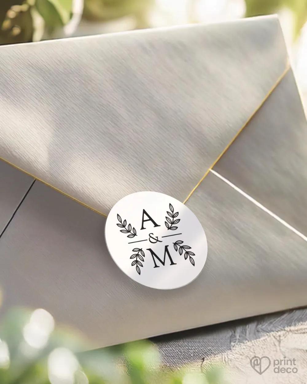 Svadobné oznámenie v čiernobielej kombinácii s elegantnými monogramami a jemnými rastlinnými detailmi pôsobí minimalisticky a sofistikovane. Výrazné rukopisné písmo dodáva dizajnu exkluzivitu a nadčasový vzhľad, ktorý je ideálny pre moderné aj tradičné svadby. Čisté línie a decentná grafika robia toto oznámenie dokonalou voľbou pre páry, ktoré preferujú jednoduchú, no štýlovú estetiku. V rovnakom dizajne sú dostupné aj svadobné tlačoviny, ako menovky, menu, etikety, pozvánky k stolu, samolepky a veľa ďalšieho.