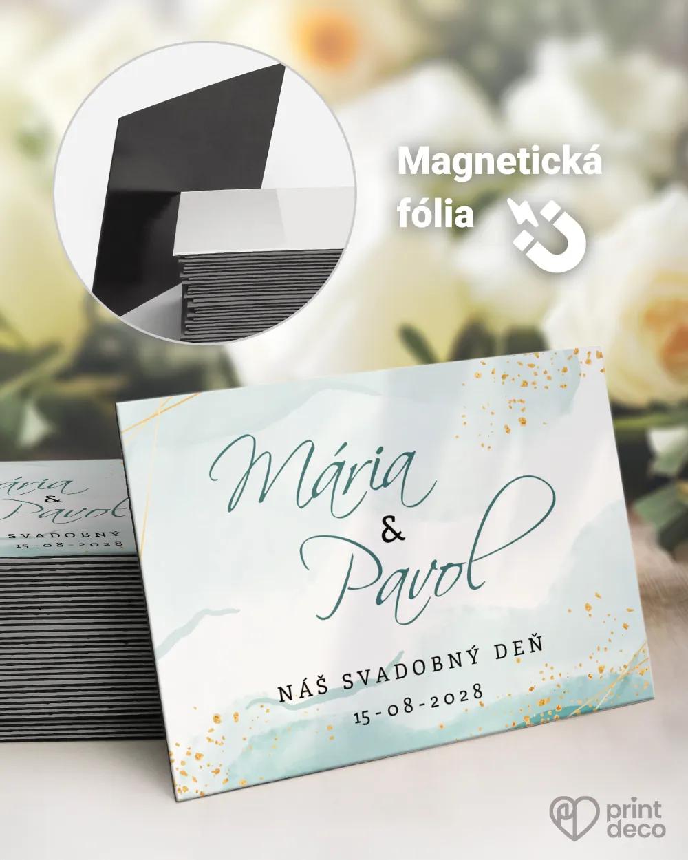 Svadobná pozvánka k stolu s moderným abstraktným dizajnom v odtieňoch tyrkysovej so zlatými akcentmi je skvelým doplnkom k oznámeniam v rovnakom elegantnom štýle. Jemné akvarelové prechody a zlaté bodky pôsobia štýlovo a sviežo, ideálne pre nadčasovú a originálnu svadbu. Text „Tešíme sa na Vás pri svadobnom stole“ si môžete upraviť podľa želania cez online editor zdarma. Vďaka expresnej výrobe a najvyššej kvalite tlače budú vaše tlačoviny dokonalé a harmonicky zladené.