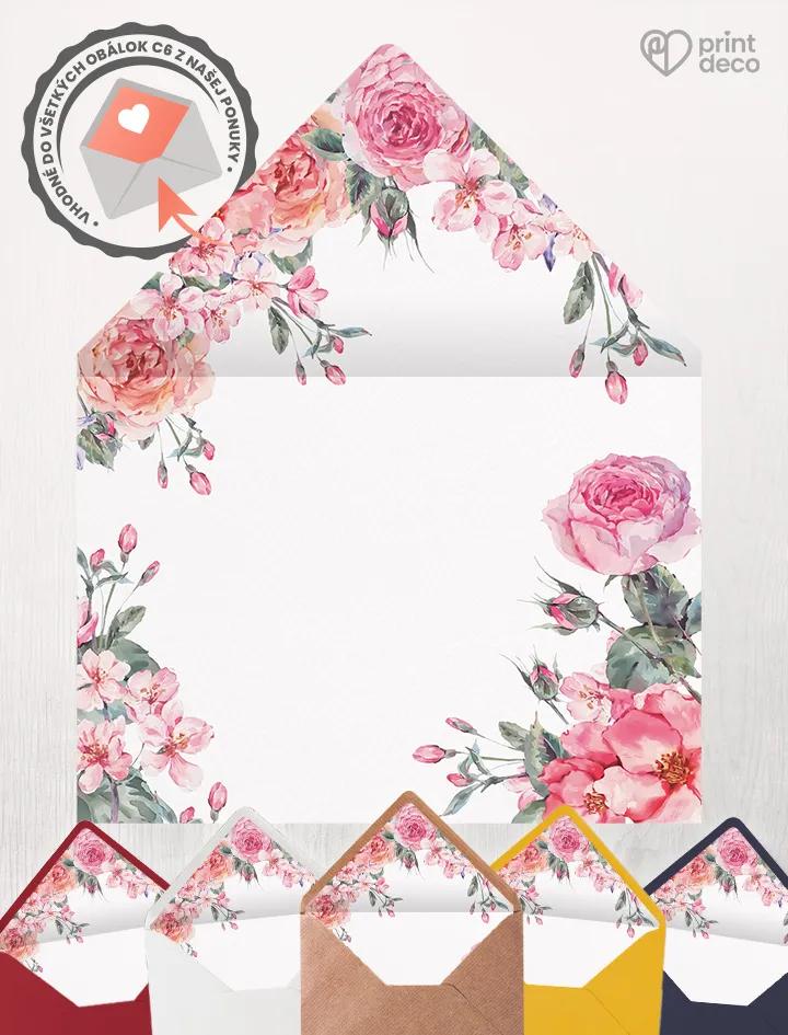 - Objednajte si vnútorné vložky, vnútorné zdobenie do obálok a využite možnosť ich skompletizovania dokúpením obálok priamo z našej ponuky. Stačí si vybrať ktorékoľvek obálky C6 z našej ponuky a pridať ich spolu s vnútrami do košíka v potrebnom počte. (V košíku sa tak spočíta cena za oba produkty). Takto si môžete zladiť vybraný motív vložky s rôznou farbou obálok z našej ponuky.