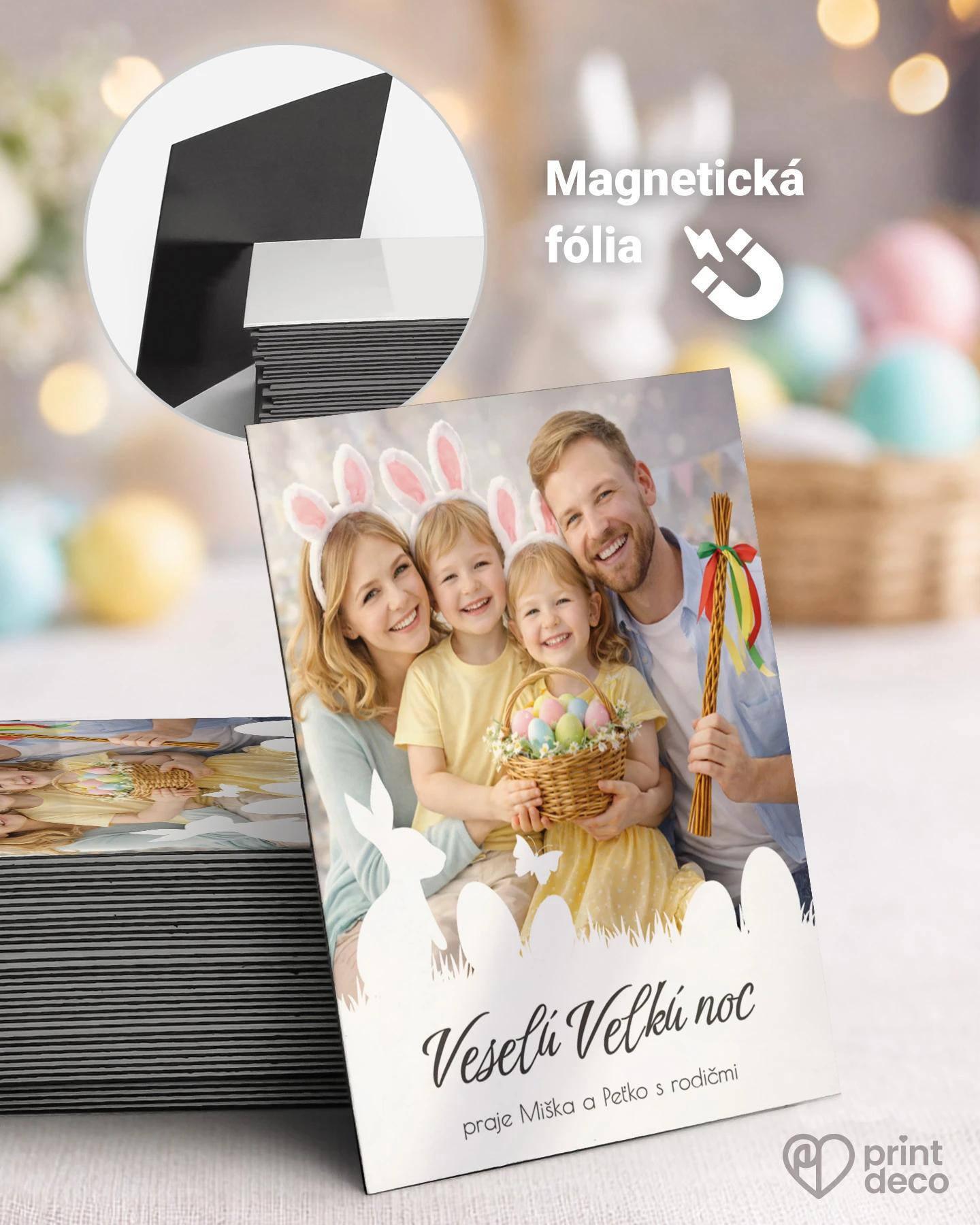 Veľkonočná foto pohľadnica s veselým jarným motívom a priestorom pre vlastnú fotografiu je ideálnym spôsobom, ako vytvoriť osobný veľkonočný pozdrav pre rodinu a blízkych. Vďaka vlastnej fotografii vznikne originálne veľkonočné prianie, ktoré zachytí spoločné chvíle a prenesie sviatočnú atmosféru priamo do rúk obdarovaných. Jemné veľkonočné prvky a príjemné farebné ladenie dodávajú pohľadnici hravý a rodinný charakter. Pohľadnicu si jednoducho prispôsobíte vlastným textom aj fotografiou a vďaka úprave zdarma cez online editor, kvalitnej tlači a expresnej výrobe získate krásnu veľkonočnú foto pohľadnicu s osobným čarom.