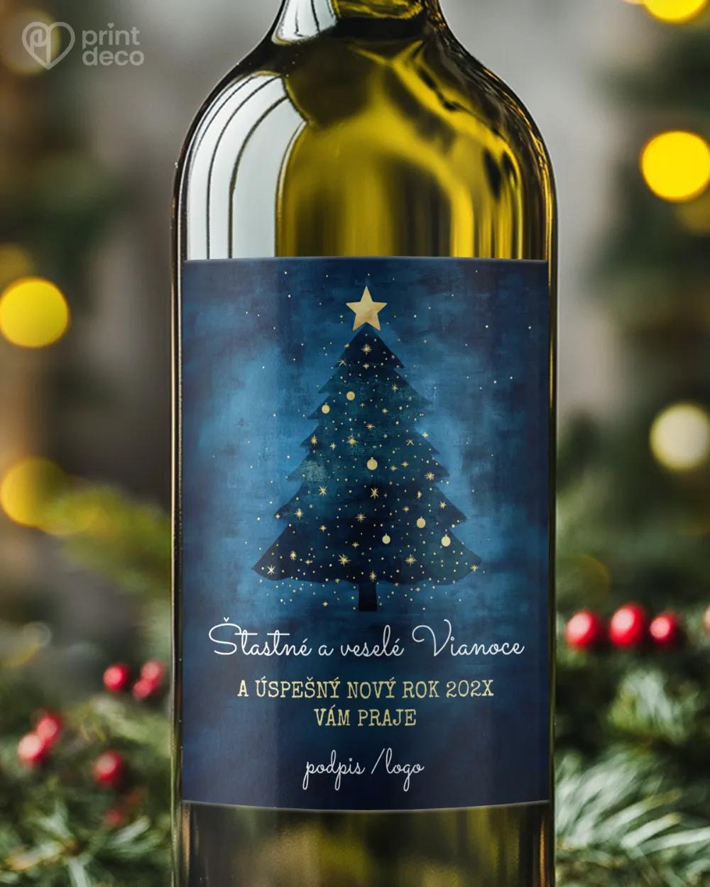 Elegantné vianočné magnetky s tmavomodrým stromčekom a zlatými hviezdami pôsobia štýlovo a reprezentatívne. Text či logo si ľahko prispôsobíte zdarma v online editore.