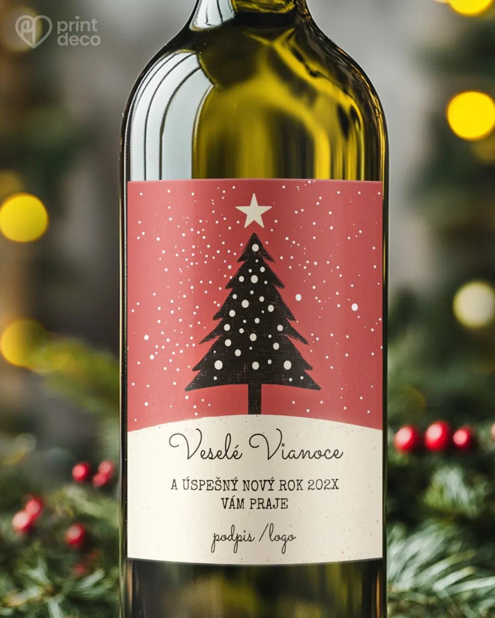 Výrazné vianočné magnetky s červeným pozadím a čiernym stromčekom v snežení pôsobia originálne a moderne. Text či logo si prispôsobíte zdarma v online editore.