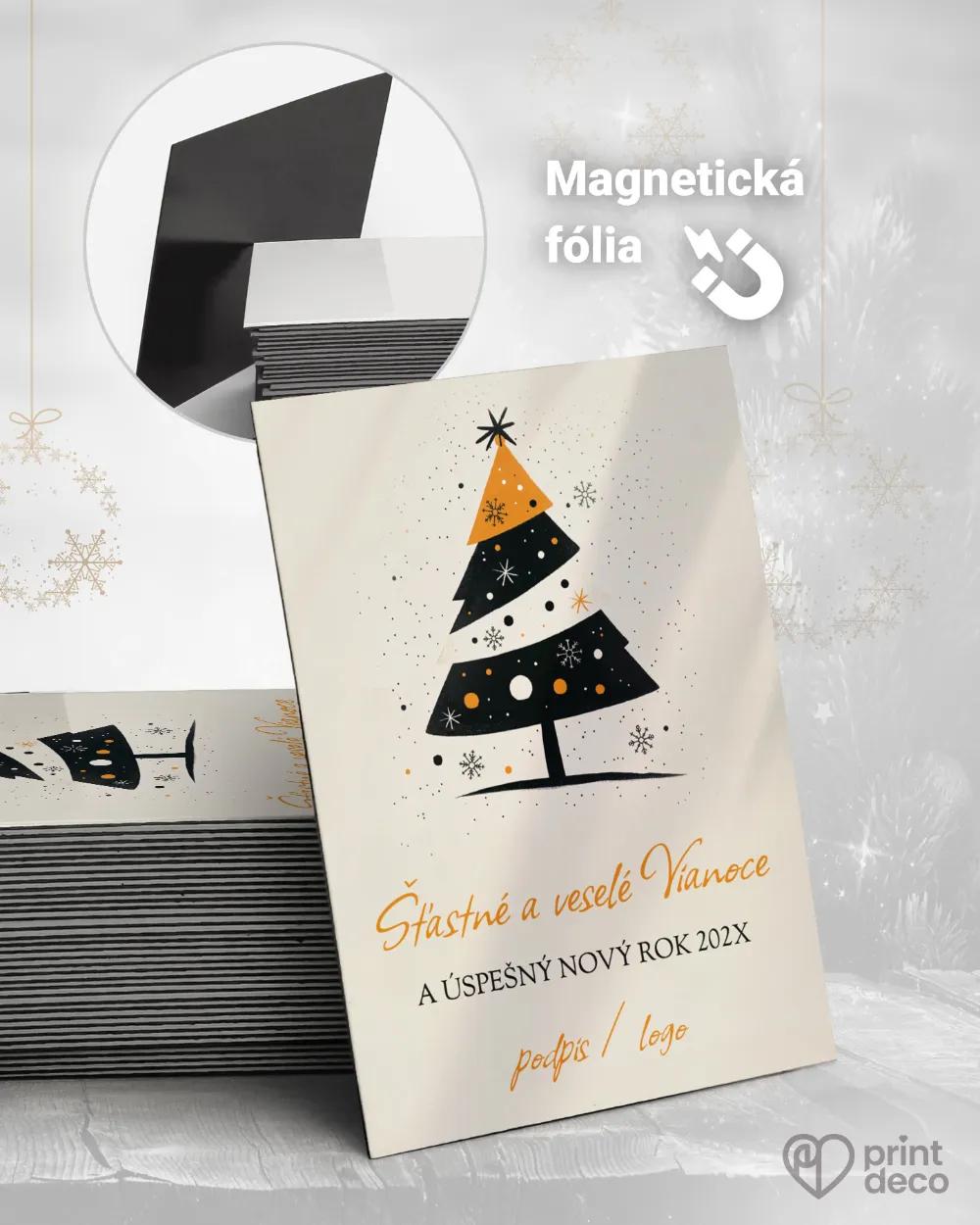 Veselý a moderný vianočný pozdrav s geometrickým stromčekom v kombinácii čiernej, oranžovej a bielej farby zaujme svojím minimalistickým, no hravým štýlom. Tento motív je ideálny ako vianočný pozdrav pre moderné firmy, dizajnové štúdiá či reklamné agentúry, ktoré hľadajú originálne PF v odľahčenom duchu. Vďaka možnosti úpravy zdarma cez online editor si jednoducho doplníte vlastný text, logo alebo podpis. Pozdrav je obojstranný, s kvalitnou tlačou a expresnou výrobou.