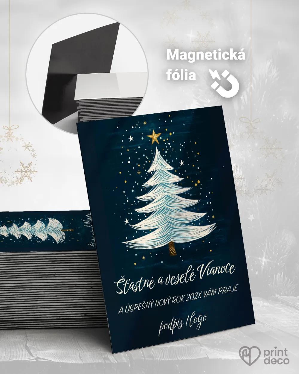 Elegantný obojstranný vianočný pozdrav v tmavomodrom prevedení s bielym stromčekom a zlatými akcentmi vytvára seriózny a zároveň sviatočný dojem. Je ideálny ako vianočný pozdrav pre finančné inštitúcie, banky, poisťovne alebo obchodné spoločnosti, ktoré chcú svojim klientom poďakovať v profesionálnom štýle. Vďaka úprave zdarma cez online editor môžete jednoducho doplniť logo, text či podpis. Kvalitná tlač, expresná výroba a decentný dizajn zaručia reprezentatívny výsledok a sviatočnú eleganciu.